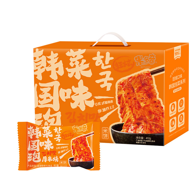 【李佳琦直播】米多奇韩国泡菜味厚米烧412g酥脆米饼膨化解馋零食