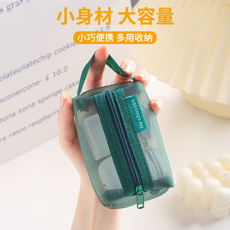 简约尼龙立体网纱收纳袋数据线充电头大容量