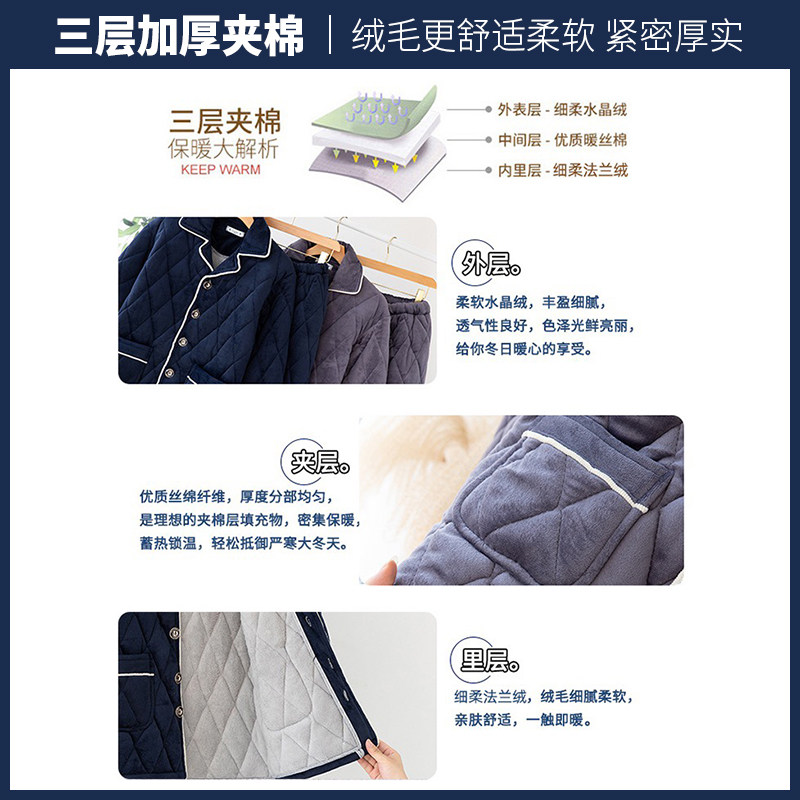冬季珊瑚绒男士睡衣三层夹棉加厚加绒法兰绒秋冬款家居服保暖套装