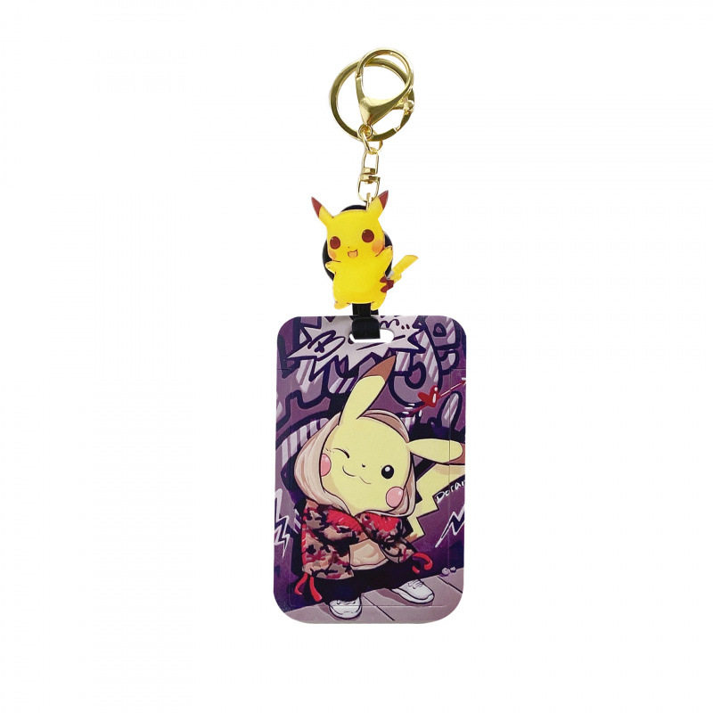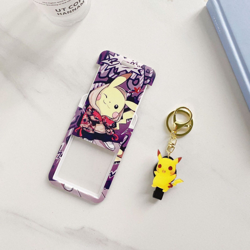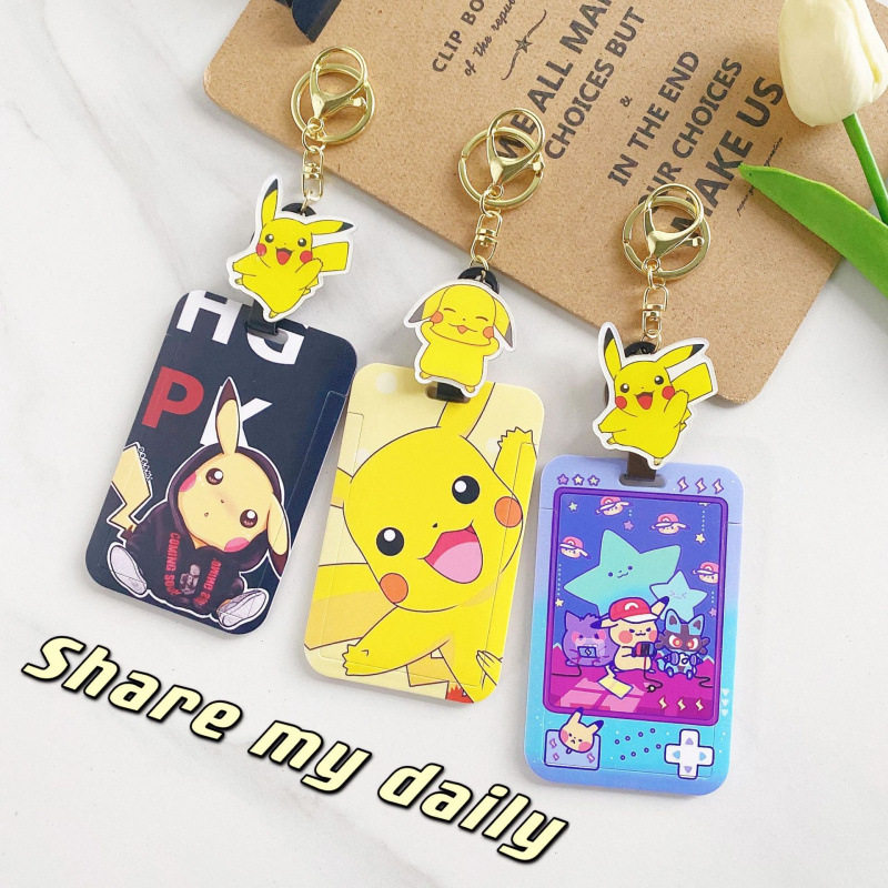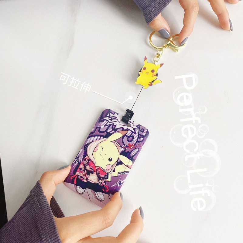 皮卡丘易拉扣学生饭卡校园卡套公交地铁卡羊城通书包挂伸缩易拉扣带挂绳校牌工厂牌钥匙扣卡套一体