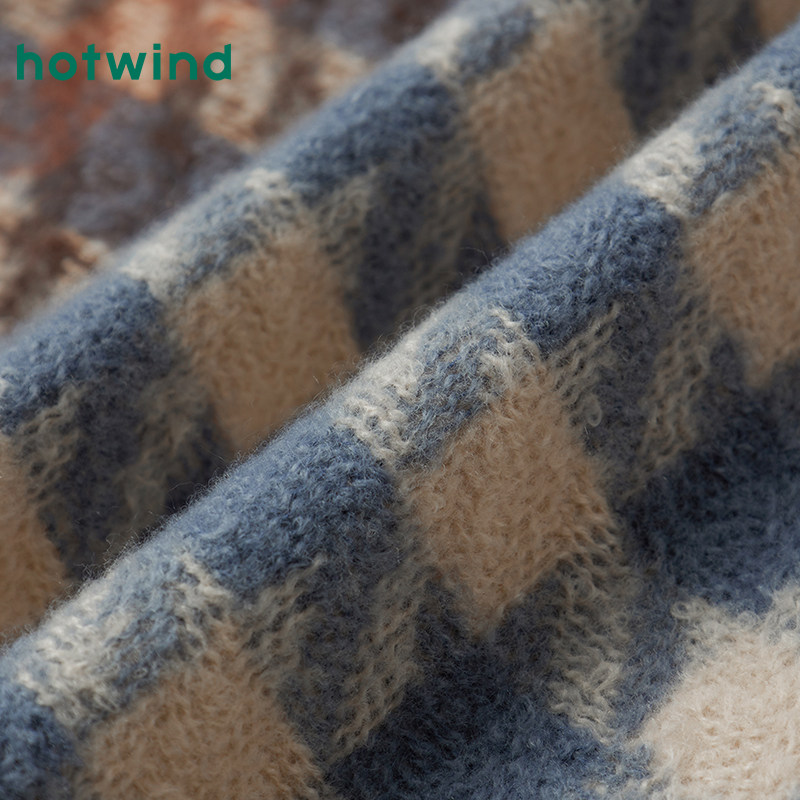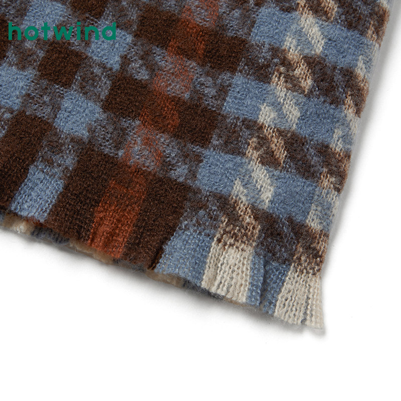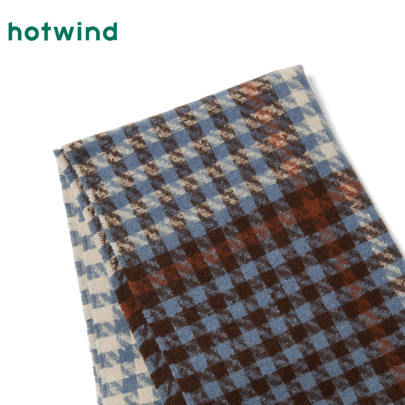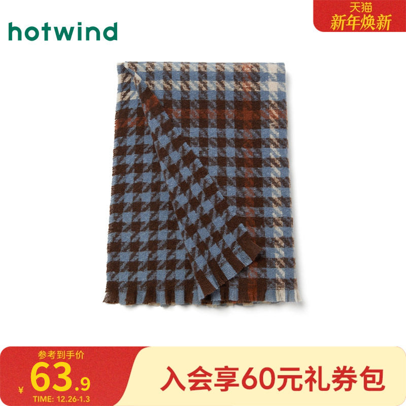 热风2025年冬季新款女士拼色千鸟格梭织流苏围巾简约气质