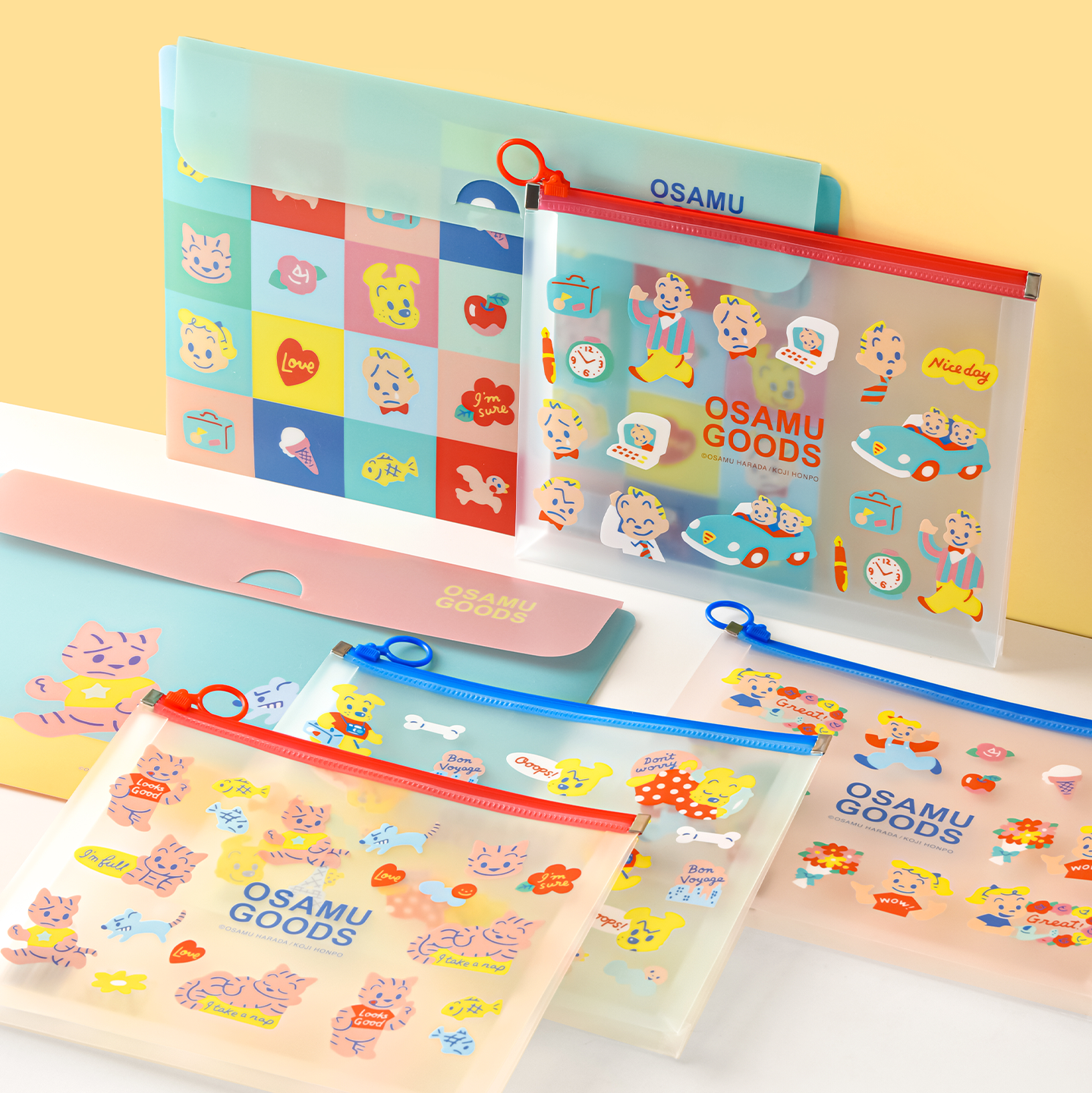 晨光卡斯波和丽莎柠檬拉边袋原田治资料袋高颜值卡通学生用试卷袋PP收纳袋少女学生文具透明全是喵文件袋
