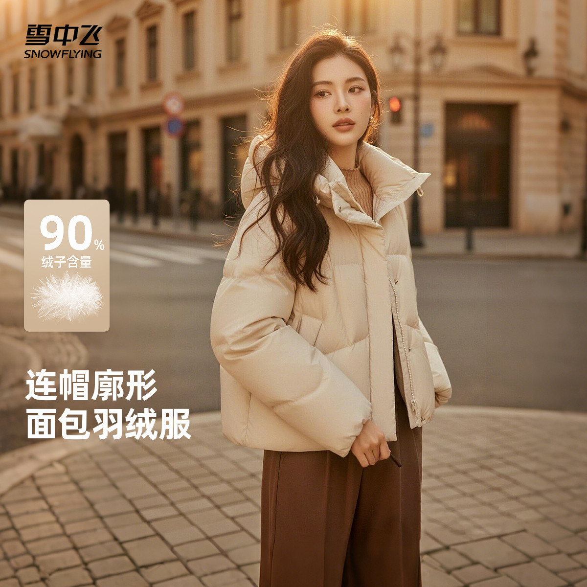 雪中飞2025冬新款短款羽绒服女小个子款泡芙通勤时尚简约面包服