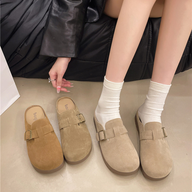 真皮包头拖秋季2025年新款勃肯鞋圆头拖鞋平底外穿休闲半拖懒人鞋