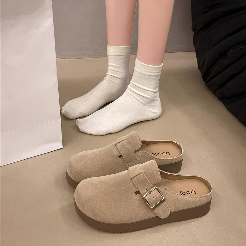 厚底勃肯鞋女2025新款冬季女鞋加绒半拖一脚蹬穆勒鞋子增高博肯鞋