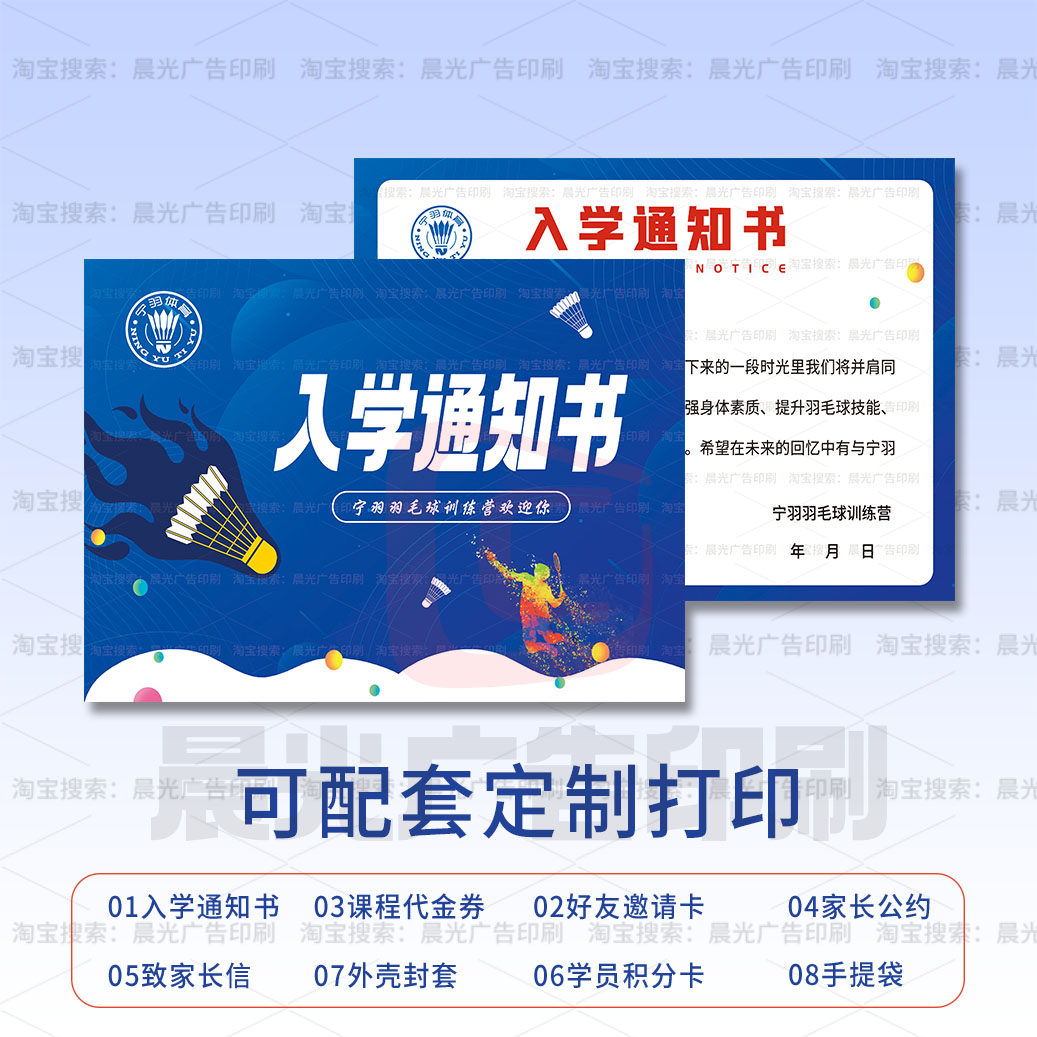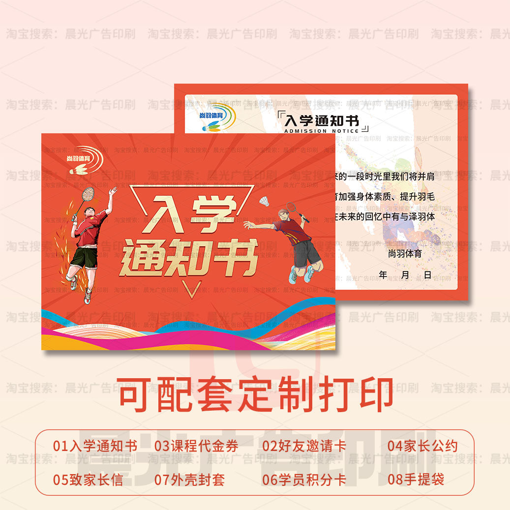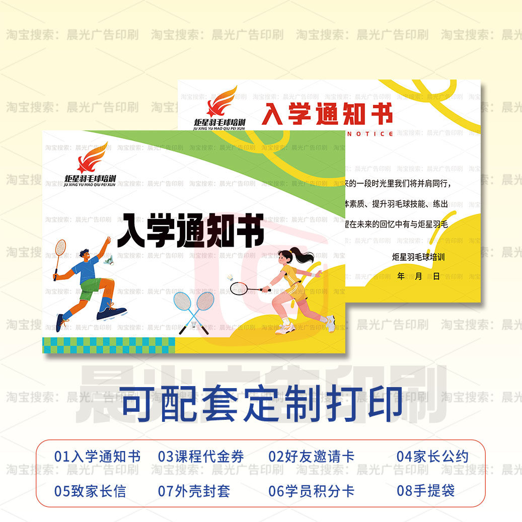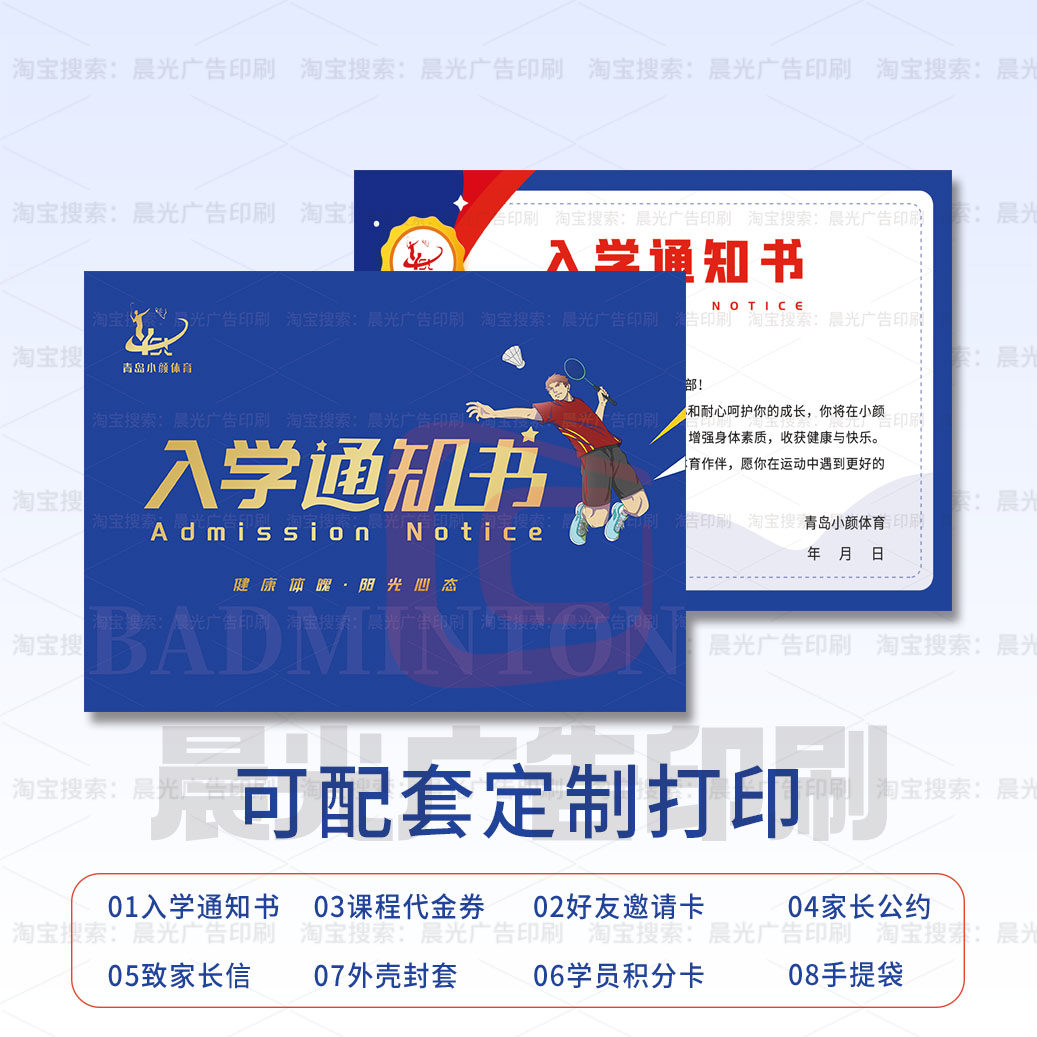 羽毛球训练营入学通知书体育体能机构家长信家长公约信封设计定制
