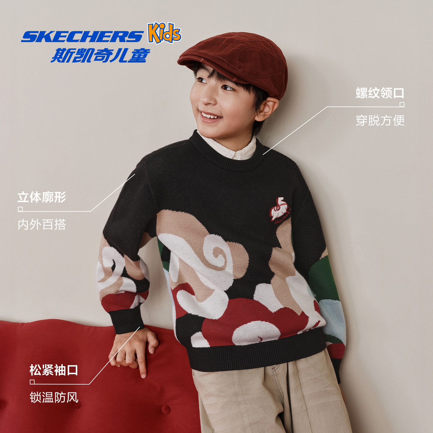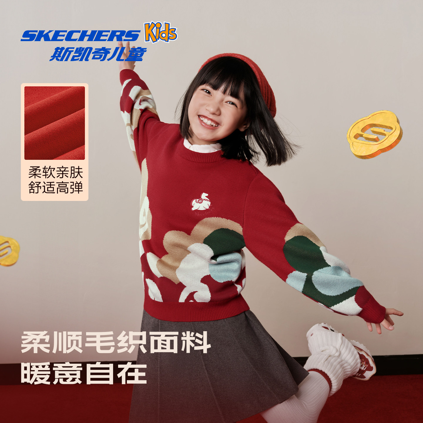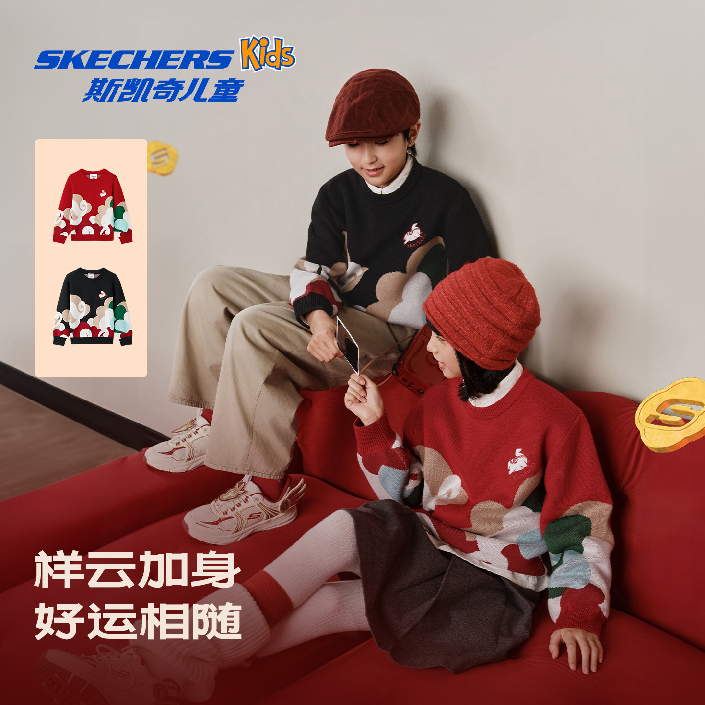 斯凯奇新年限定毛织套头卫衣男女同款中大童休闲保暖时尚慵懒毛衣
