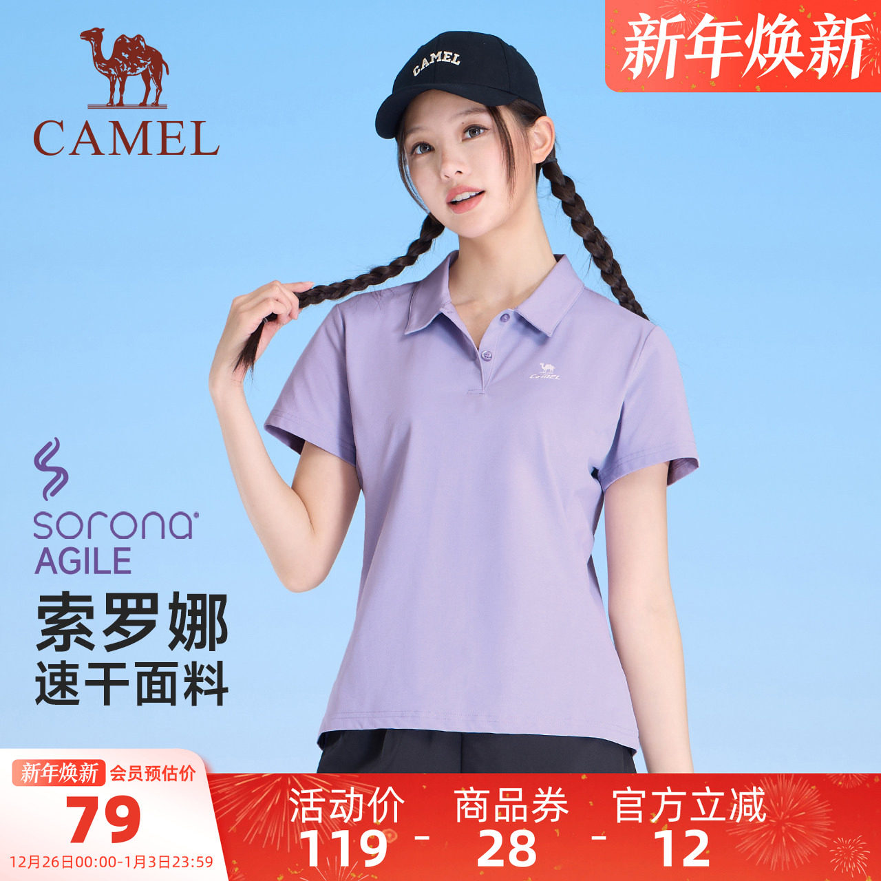 骆驼运动POLO衫女士2025夏季新款透气短袖翻领速干T恤女修身上衣
