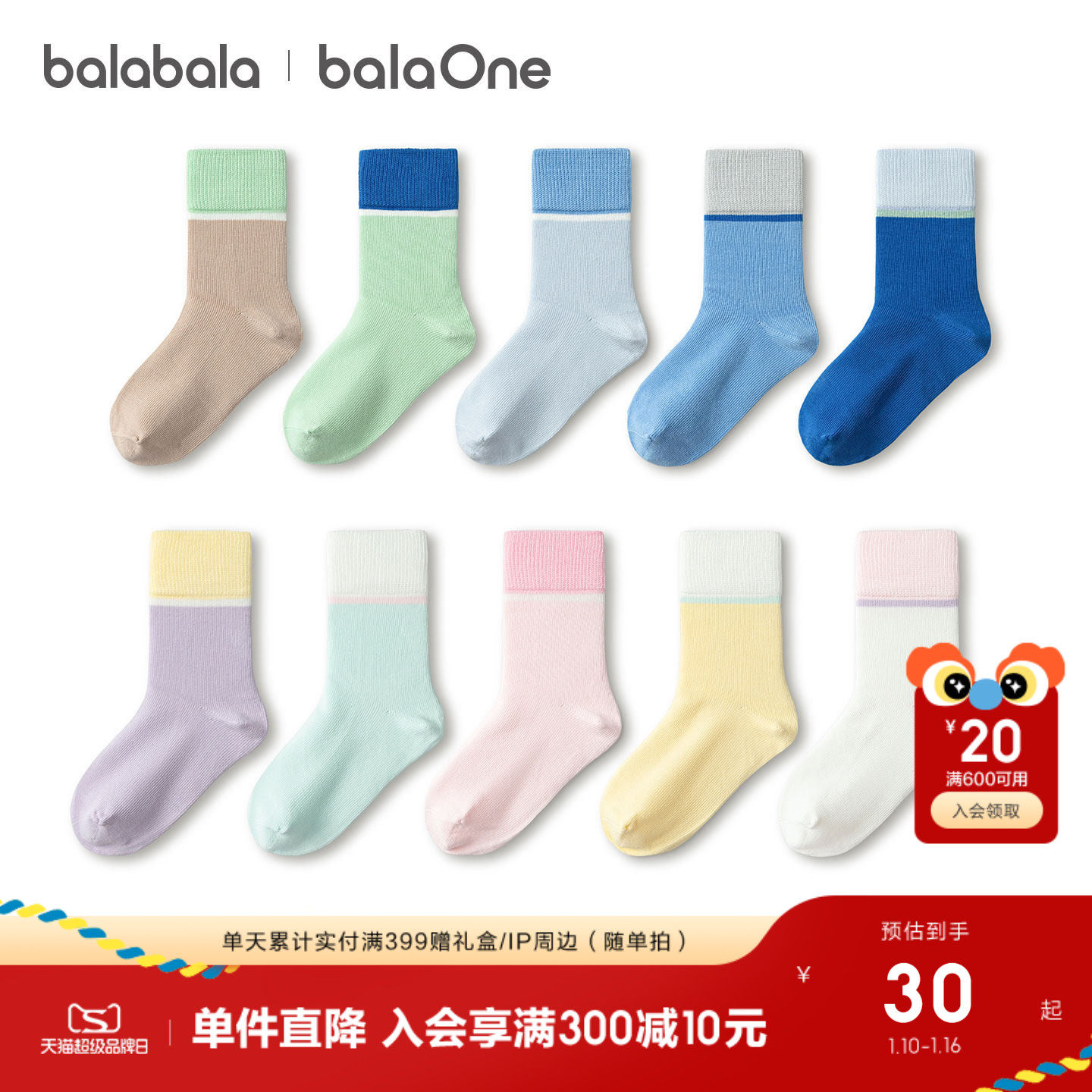 巴拉巴拉儿童袜子春秋季男女童棉袜中筒袜纯色舒适小童中五双装潮