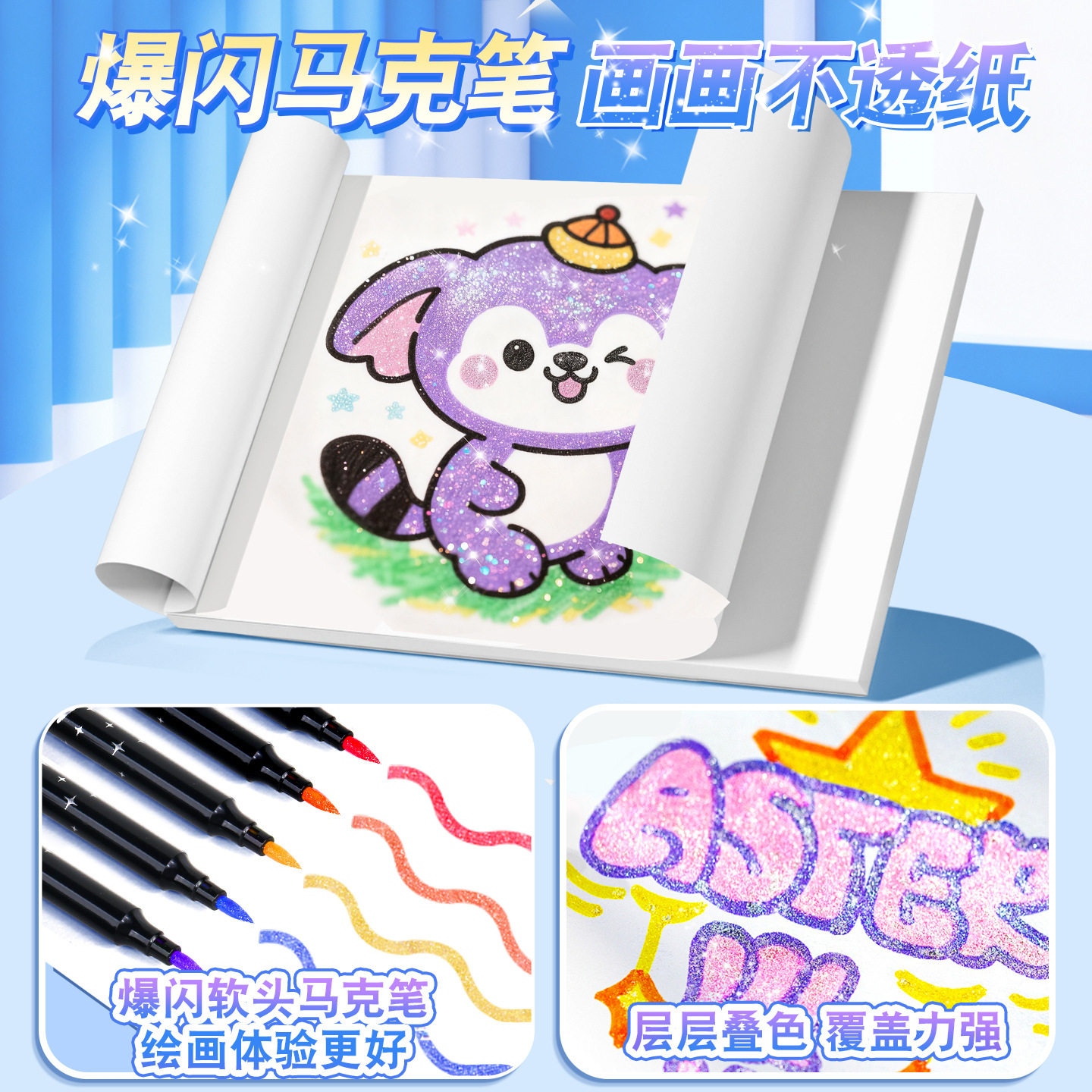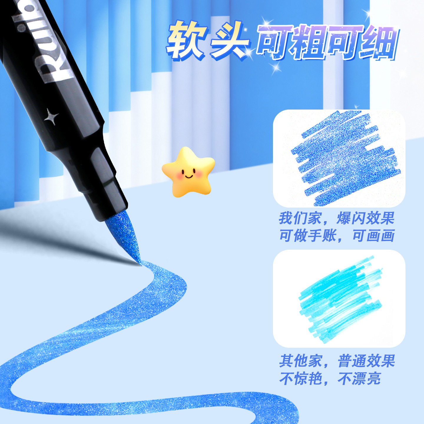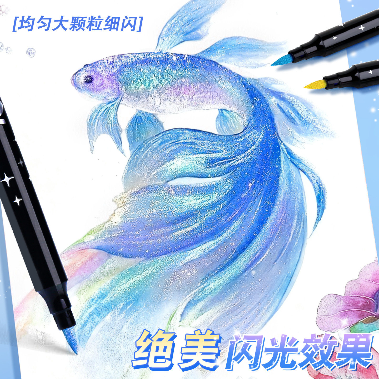 安格尔闪光马克笔笔荧光带闪粉闪闪荧光笔闪粉水彩笔记号笔珠光绘画亮片彩笔儿童学生专用彩绘手账笔炫彩笔