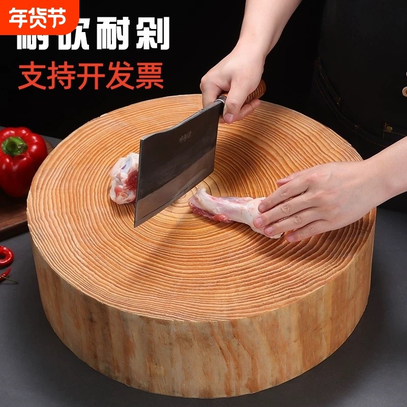 圆形松木砧板商用酒店实木厚菜墩家用抗菌切菜板剁砍骨头案板整木