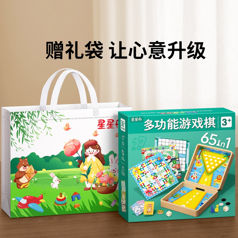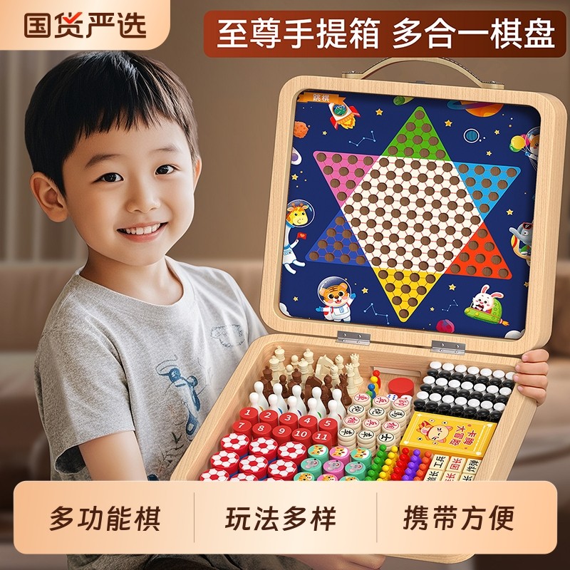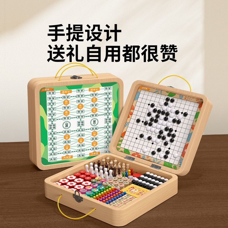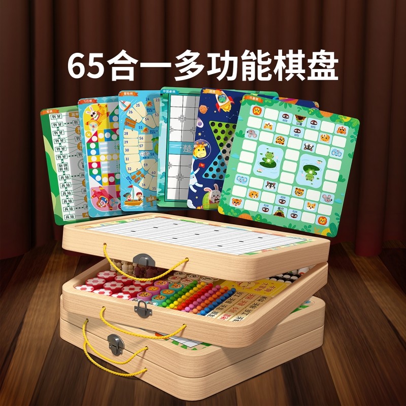 65合一多功能棋盘跳棋飞行棋五子棋儿童版多合一棋类益智玩具桌游