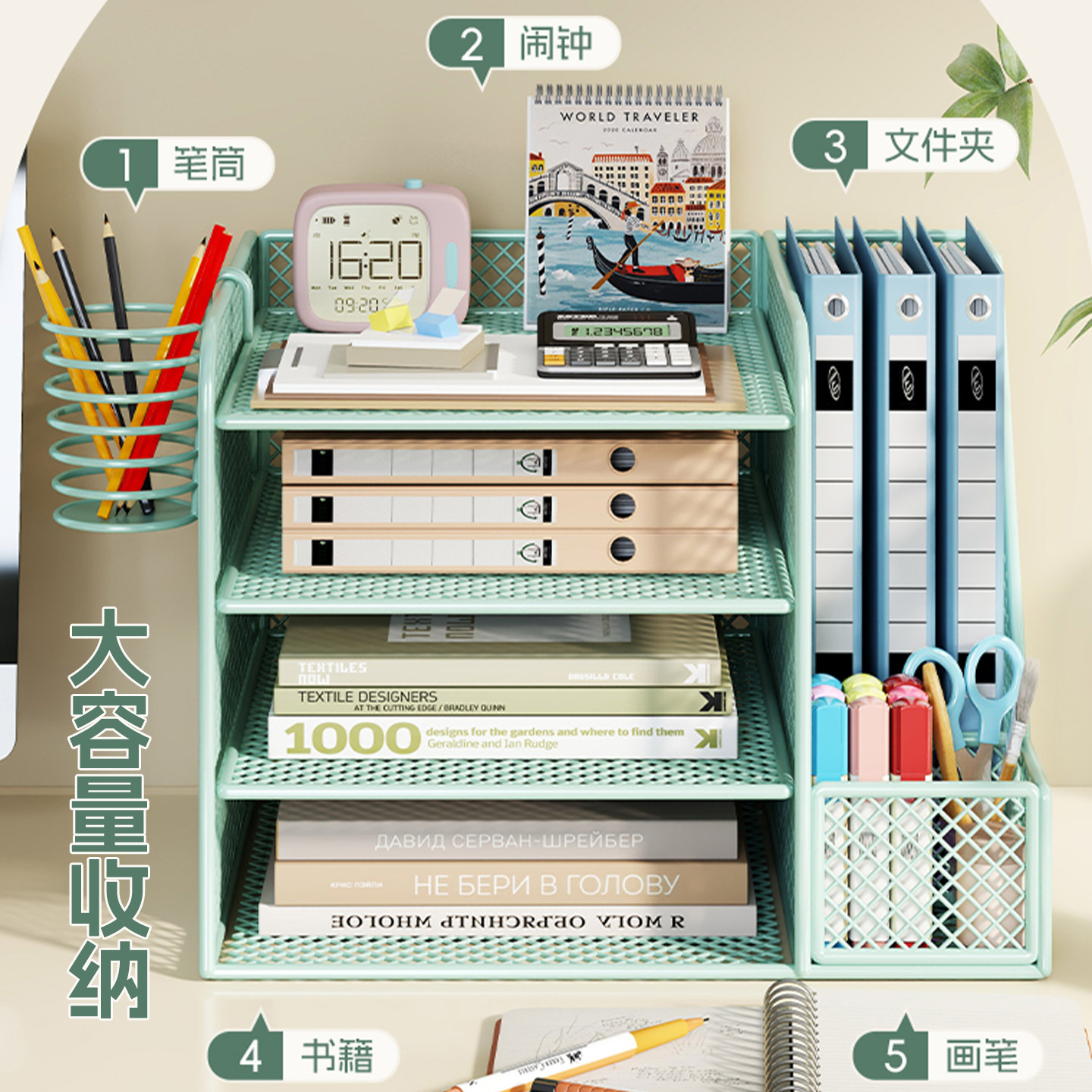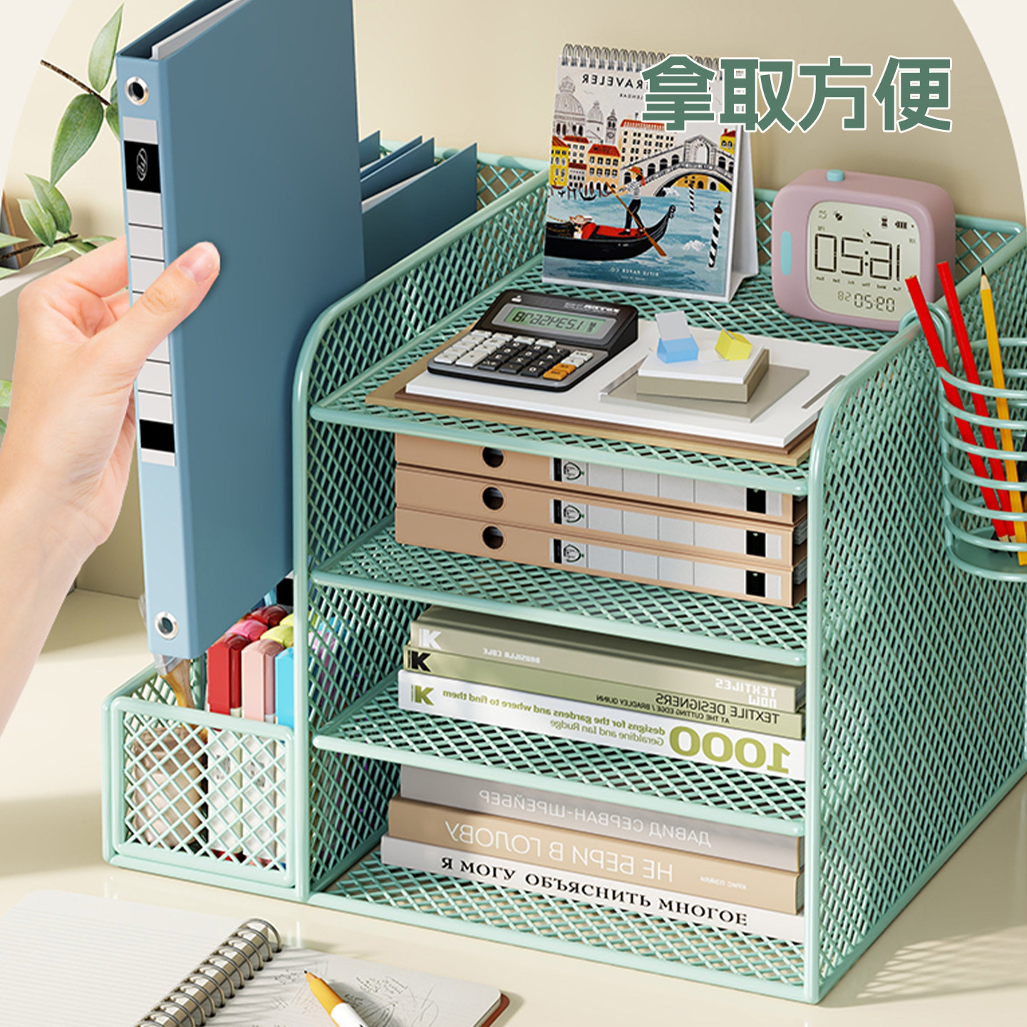 办公桌收纳置物架文件收纳盒办公用品文件架桌面书架多层大容量文件框文件夹A4纸资料档案整理架金属书立架