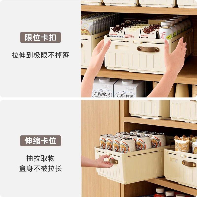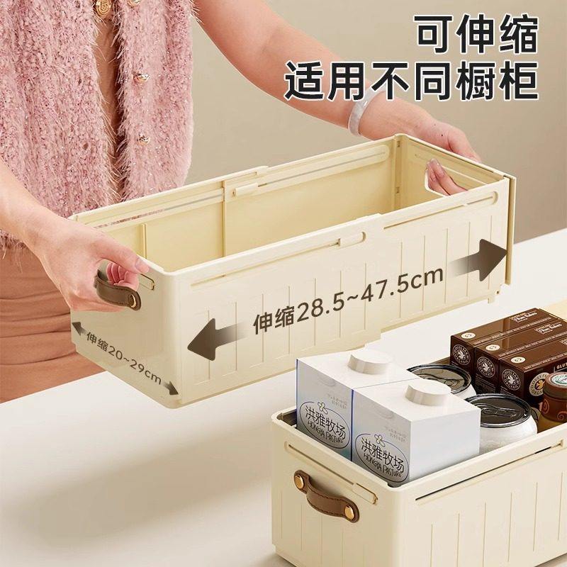 橱柜收纳盒抽屉式可伸缩桌面零食杂物厨房整理盒深柜直角储物盒子