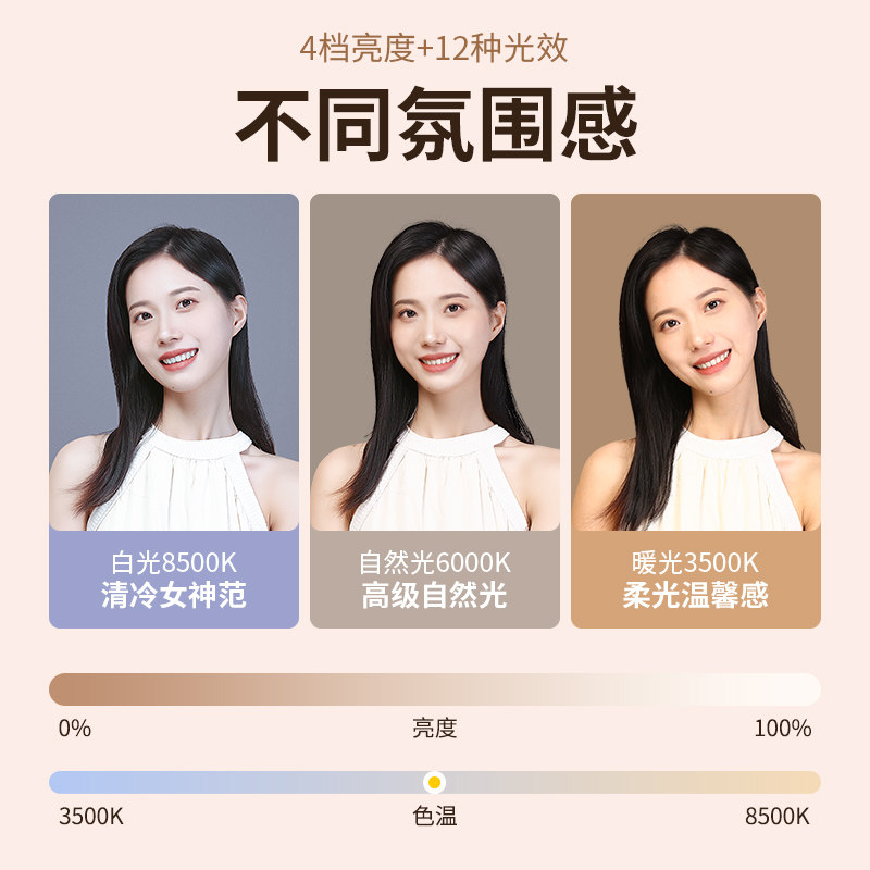 直播补光灯手机自拍拍照美颜嫩肤打光灯美白室内相机摄影棚神器小型迷你便携抖音快手网拍道具高清色温主播