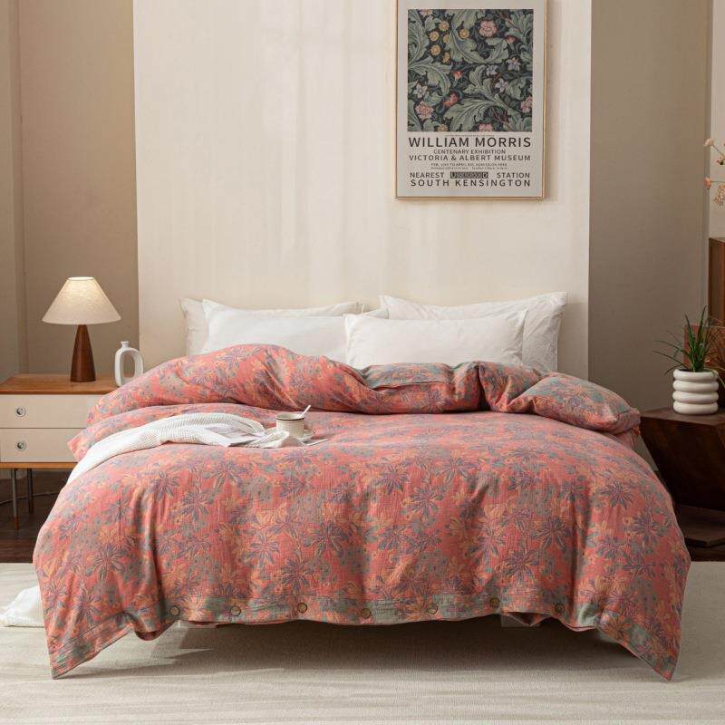 叶清-A类母婴级全棉色织双层纱四件套纯棉提花被套1.8m床家居套件