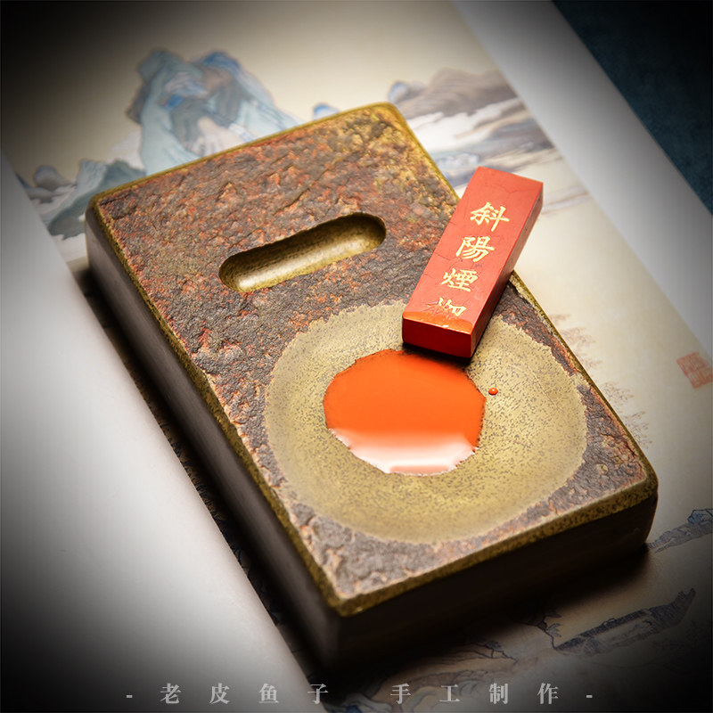 老皮鱼子素砚清仓处理砚台歙砚肩端砚四大名砚鱼子带原石皮磨墨条