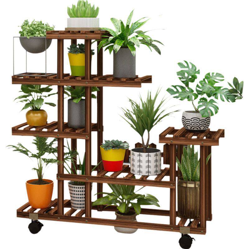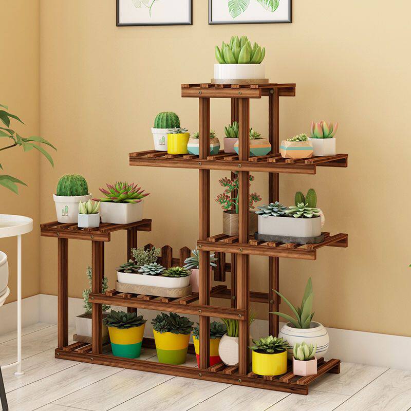 阳台实木质花架子落地式室内客厅花盆架多层组装碳化多肉置物架厂