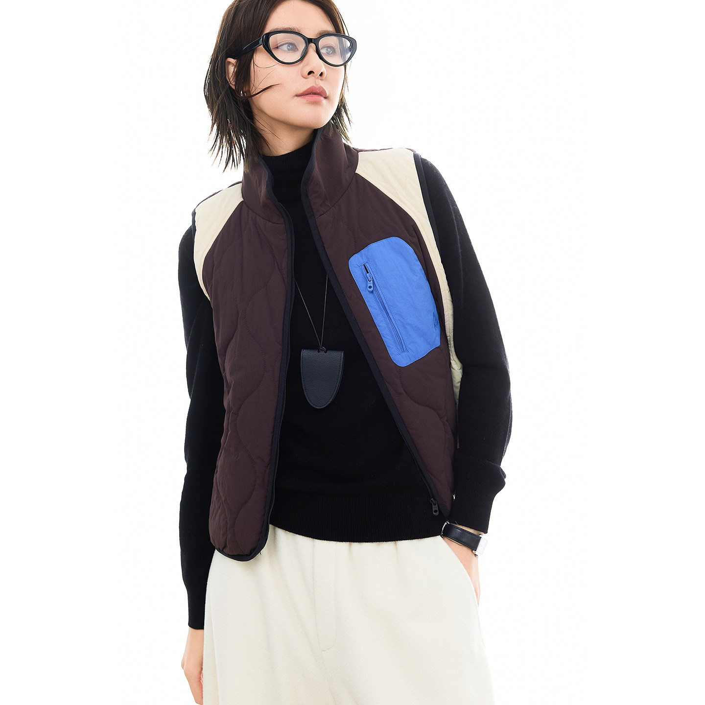 云上生活【晴暖马甲】葫芦格绗棉撞色拼接短款马甲外穿2025冬季女