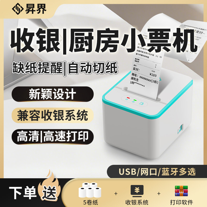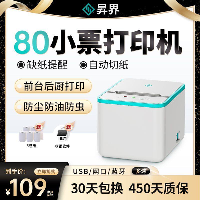 昇界热敏80mm小票打印机前台收银机出单网口后厨餐饮厨房点菜单票据美团京东饿了外卖订单蓝牙自动接单打单机