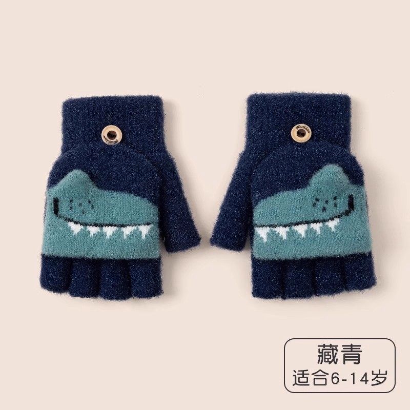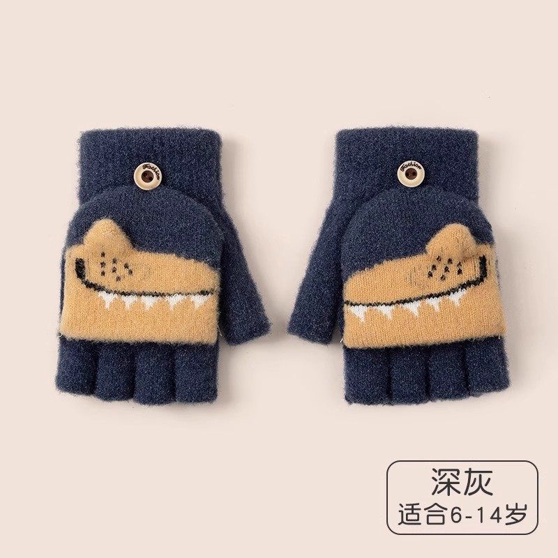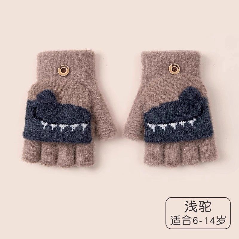 儿童冬季写字手套男孩翻盖半指露指学生写作业保暖男女童手套冬天
