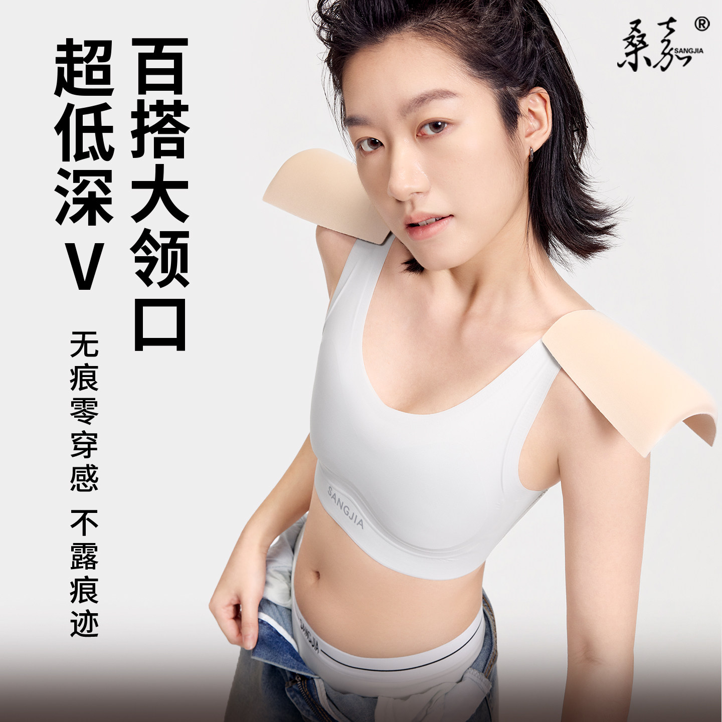 桑嘉凉感深V无痕束胸内衣大胸显小超平运动背心cos神器缩胸裹胸夏