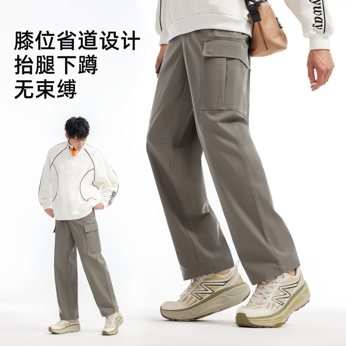 骆驼男装休闲裤男款登山工装直筒宽松户外秋冬多口袋运动阔腿山系