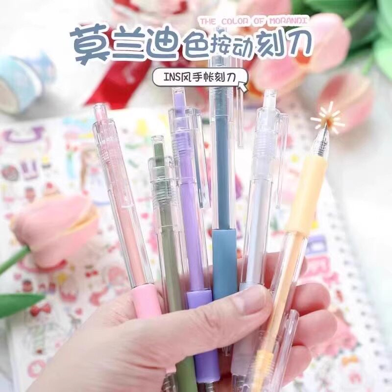 莫兰迪按动美工刀ins高颜值简约学生手账裁纸小刀刻刀少女心笔刀