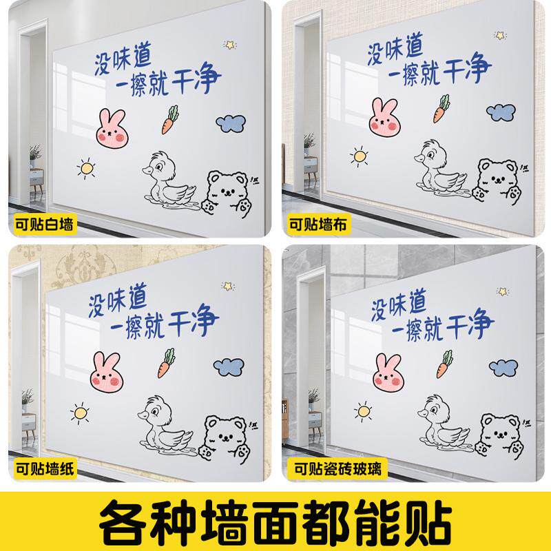 静电白板墙贴吸附家用教学可擦黑板可移除不伤墙卧室儿童房布置软白板画画的墙壁贴纸展示写字板遮丑装饰