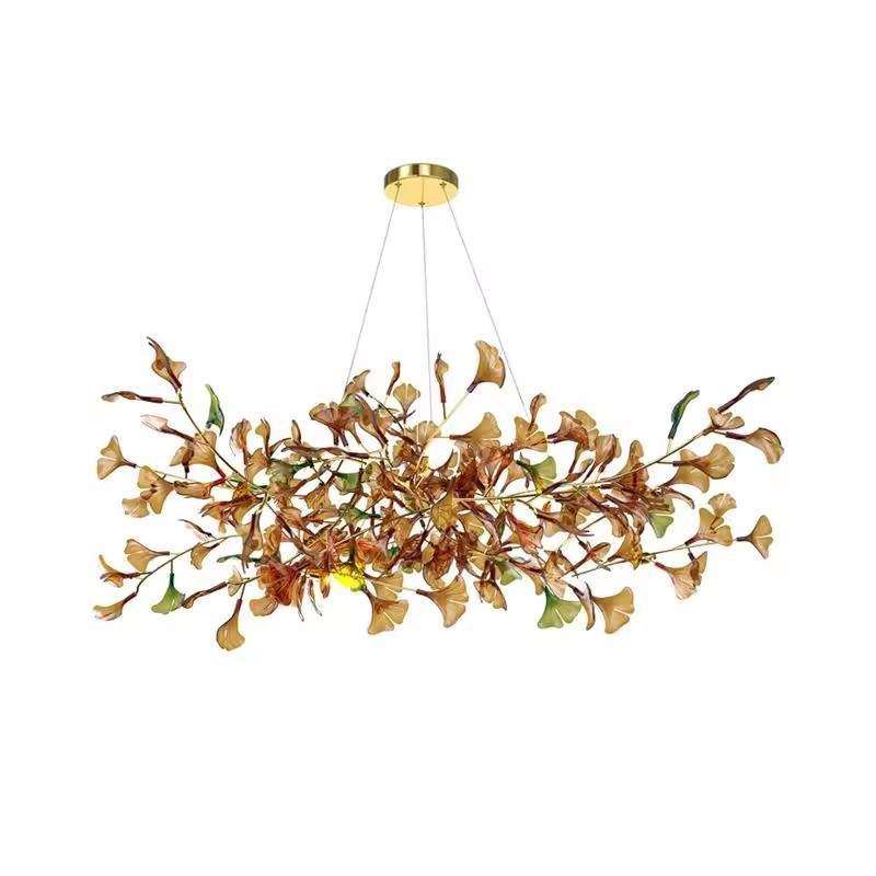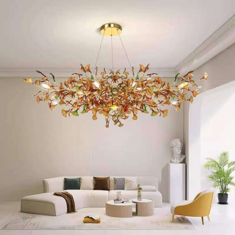 客厅简约大气新款创意彩色银杏叶吊灯设计师复式楼别墅楼梯餐厅灯