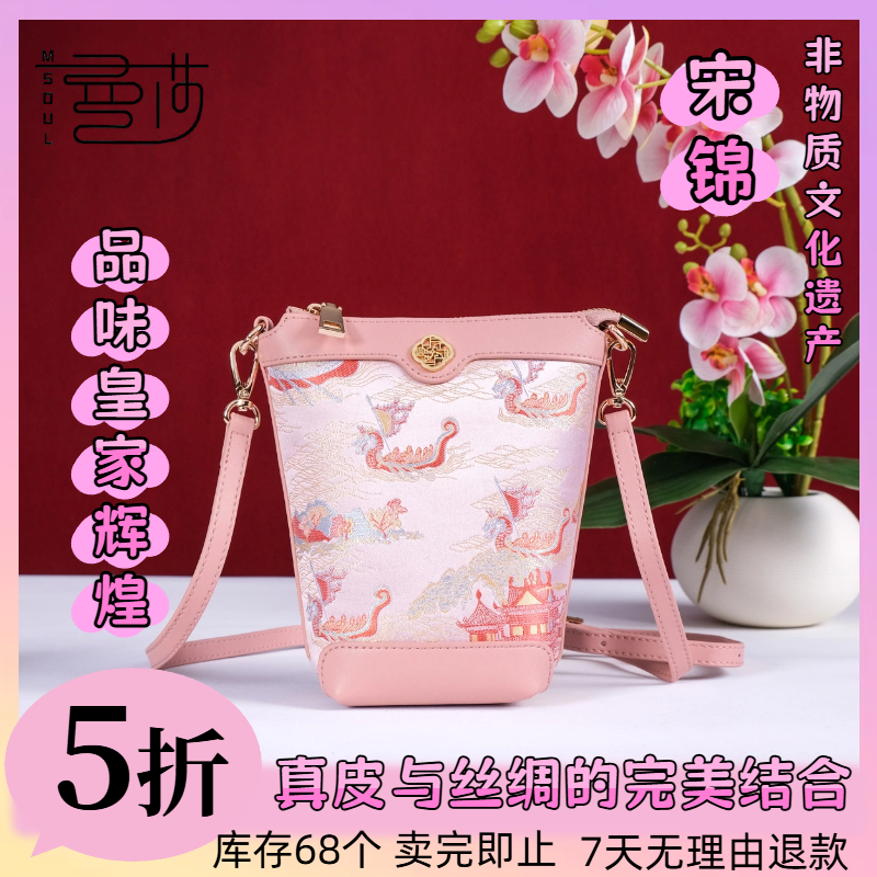 曼莎国风宋锦香云纱手提斜挎刺绣真丝牛皮新款新中式女包旗袍包包