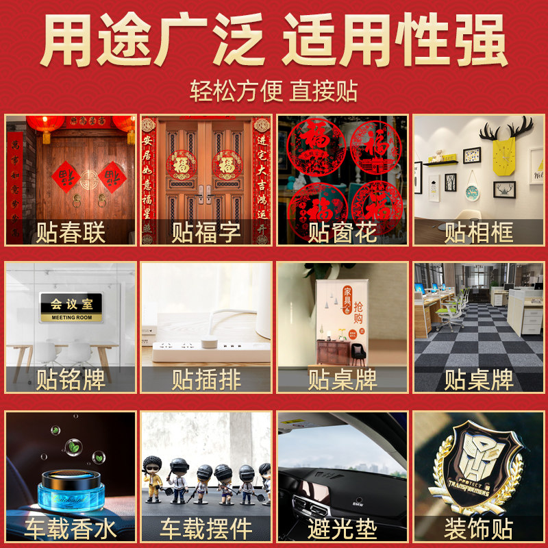 贴对联专用双面胶无痕胶春联专用胶双面胶贴高粘度不留痕透明胶带粘墙福字喜字年画固定墙面婚庆婚房婚车神器