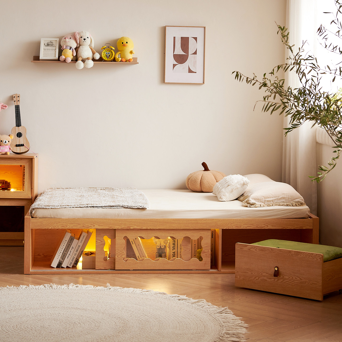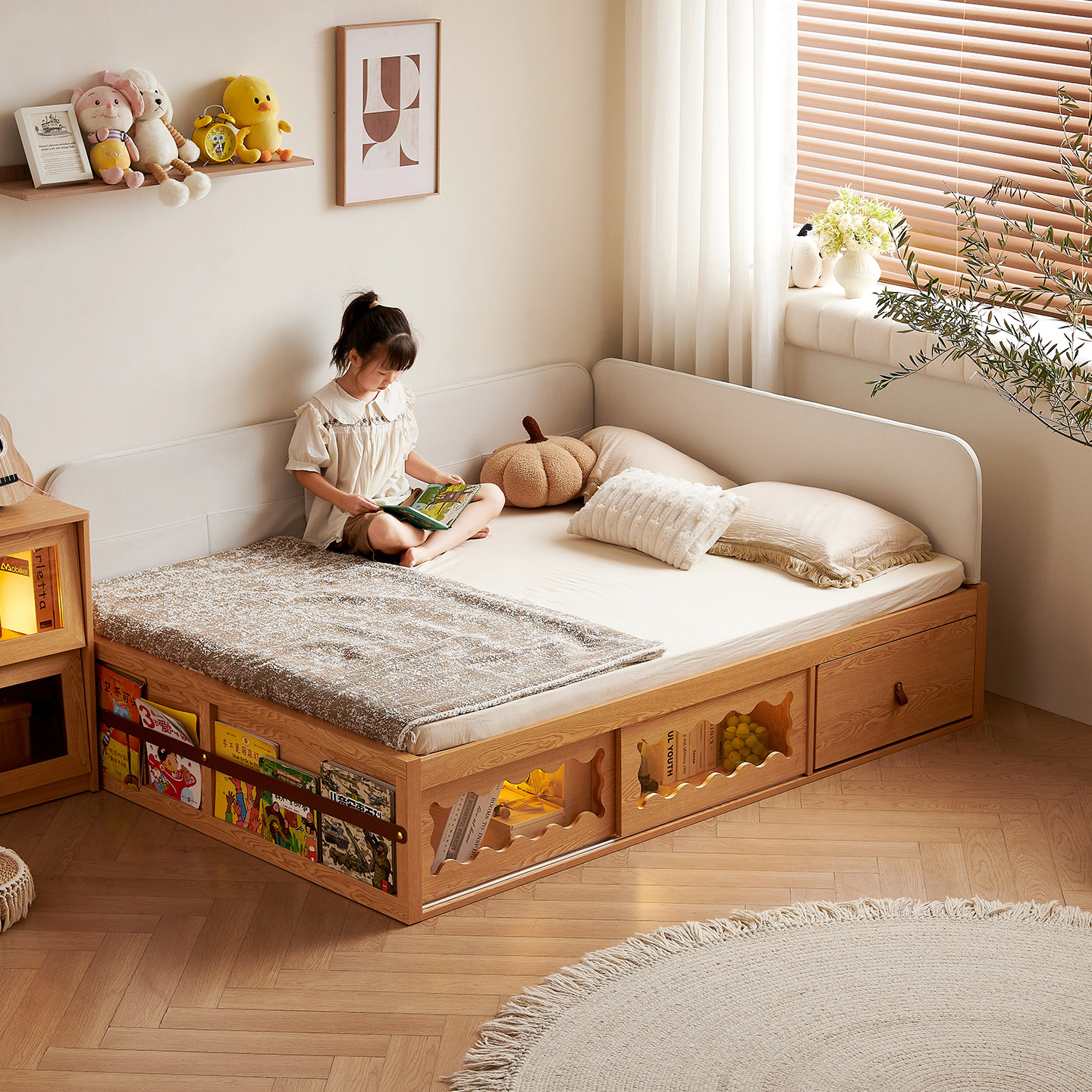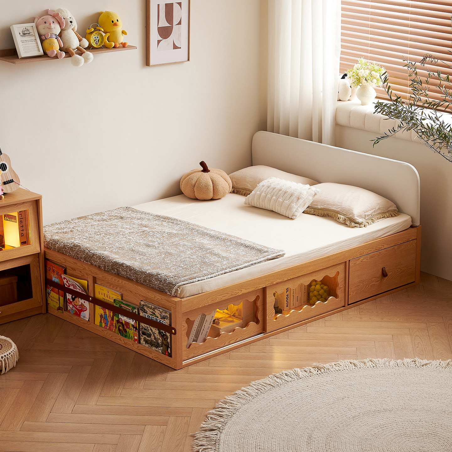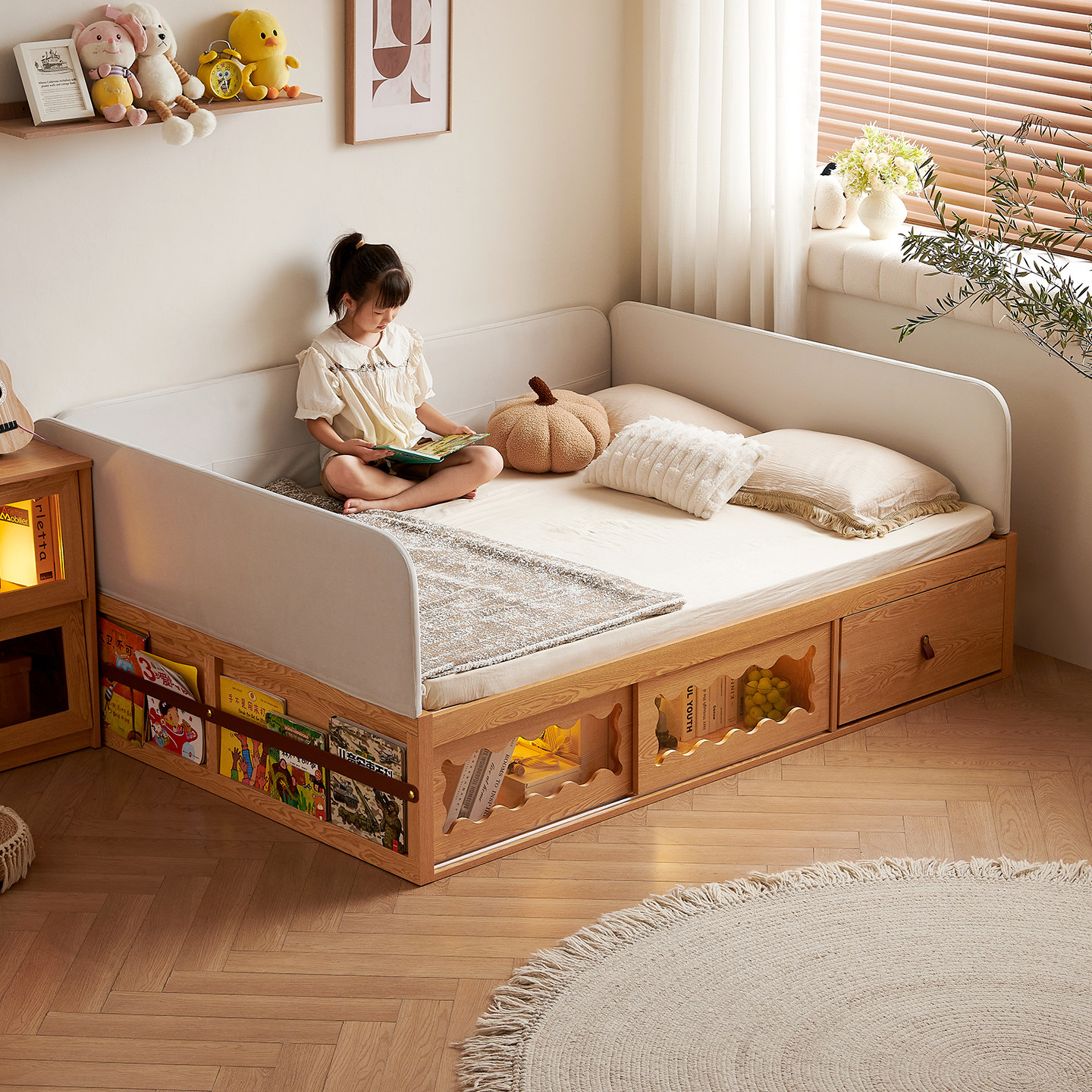 爱家智造实木儿童床蒙氏地台床小户型软包落地床简约单人家用小床