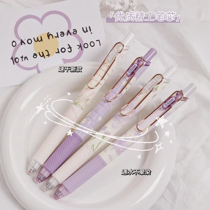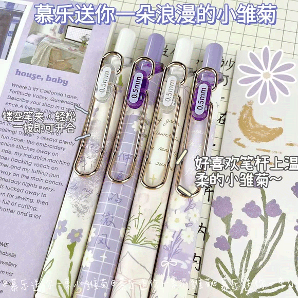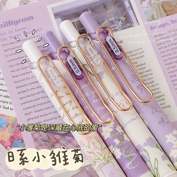 小雏菊系列不起茧按动笔黑色水笔软握小学生初中生限定ins高颜值学生葫芦头速干刷题中性笔笔0.5碳素黑笔书写