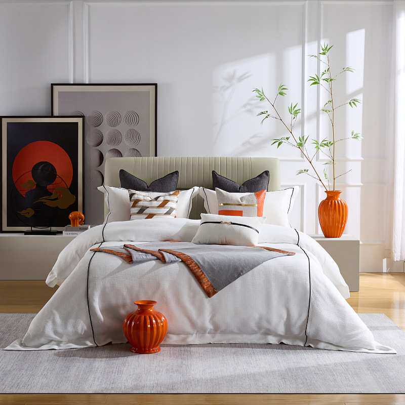 现代高档别墅家具展厅软装套件样板房床上用品轻奢样板间楼盘床品