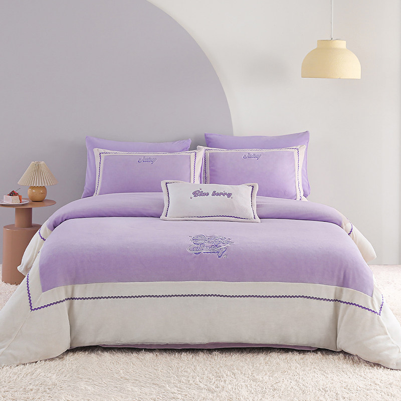 无印良品纯色秋冬牛奶绒四件套珊瑚绒床上绒三件套冬季加绒法兰绒