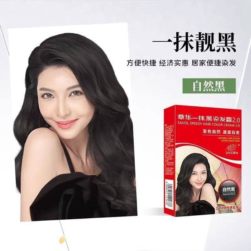 章华一抹黑染发霜2.0焗油自然黑色染发剂在家染发遮盖白发染发膏