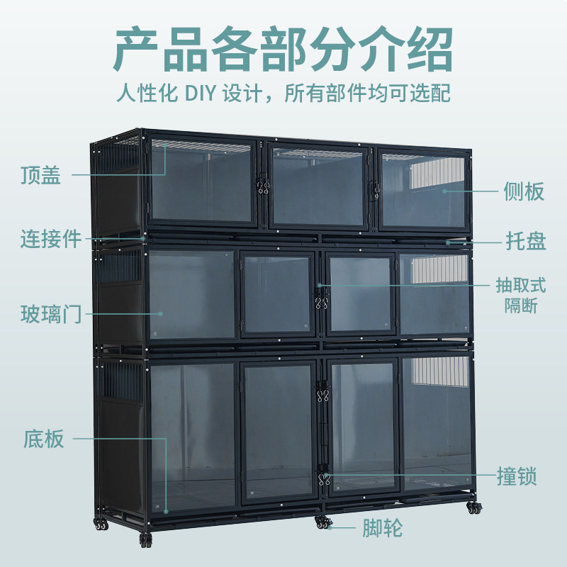 宠物店寄养笼钢化玻璃展示笼猫笼狗笼子宠物美容繁殖繁育笼住院笼