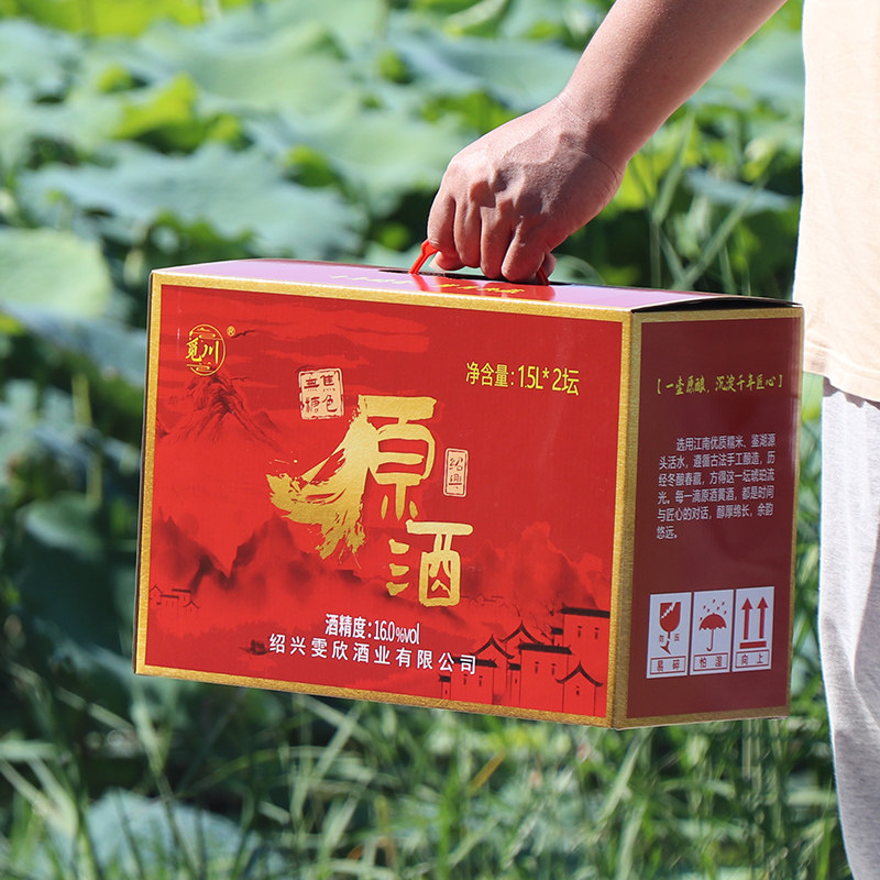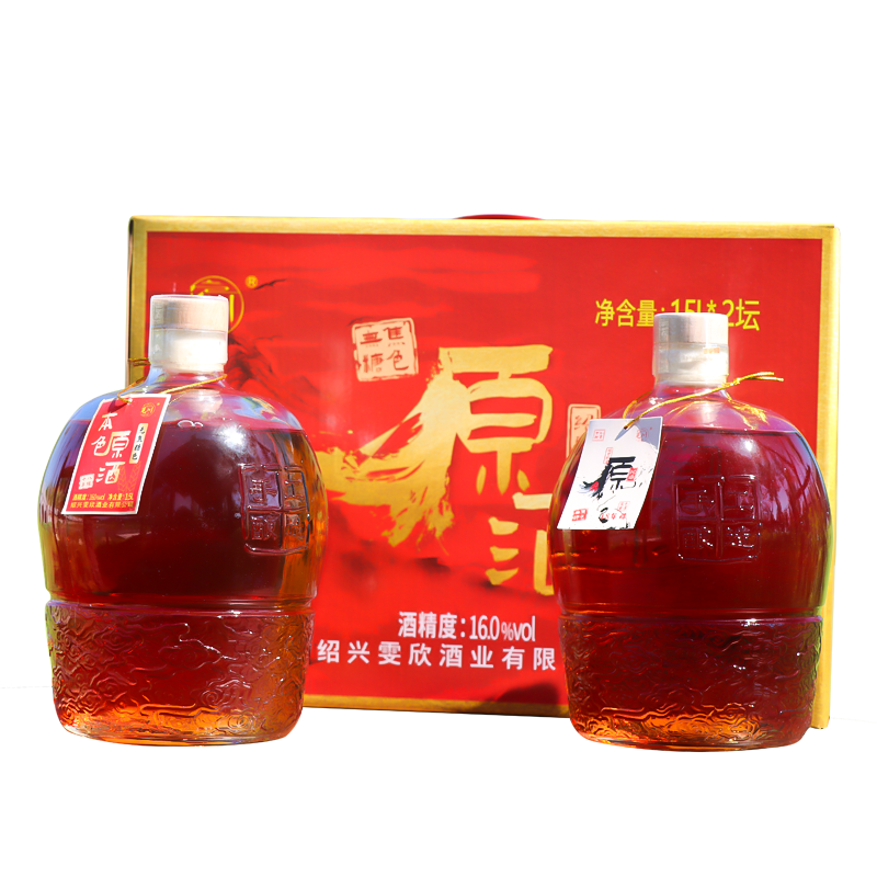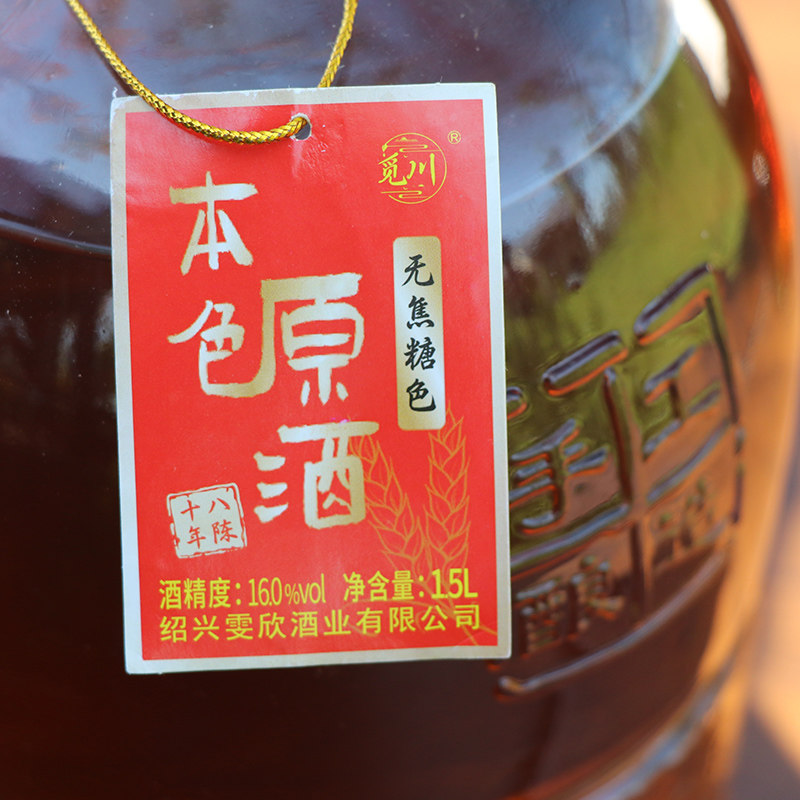 绍兴产黄酒低糖本色原酒18年无焦糖色半干型花雕酒1.5L*2坛装糯米