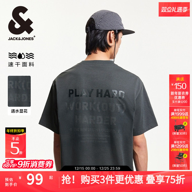 [遇水显花&速干]杰克琼斯男装2025年秋胶印男士短袖T恤户外打底衫