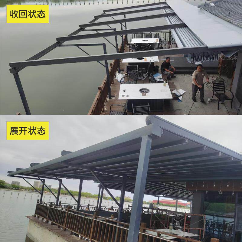 家用阳台伸缩棚雨棚户外铝合金推拉雨棚遮阳棚露台电动折叠天幕棚