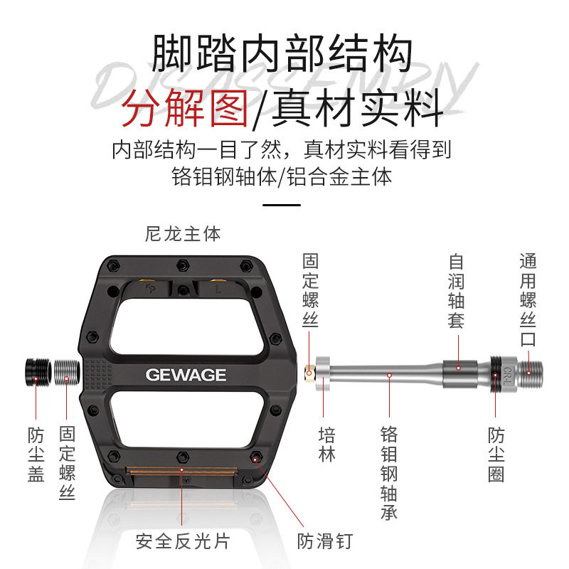 GEWAGE自行车脚踏板骑行脚蹬培林脚踏骑行用品尼龙踏板带反光片
