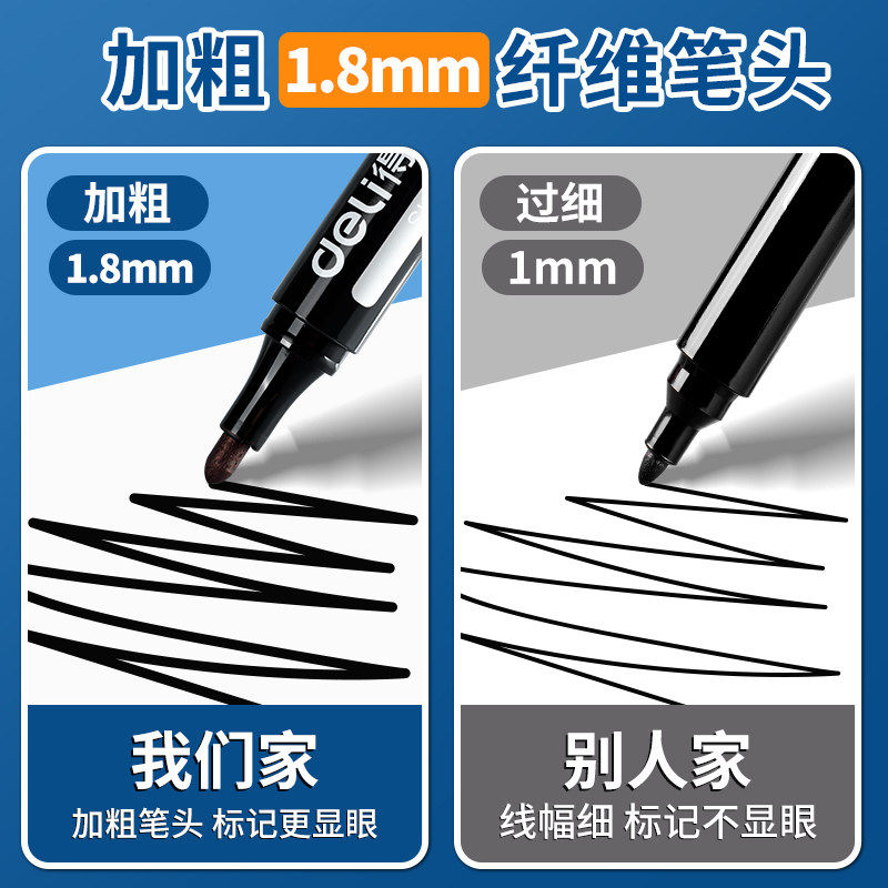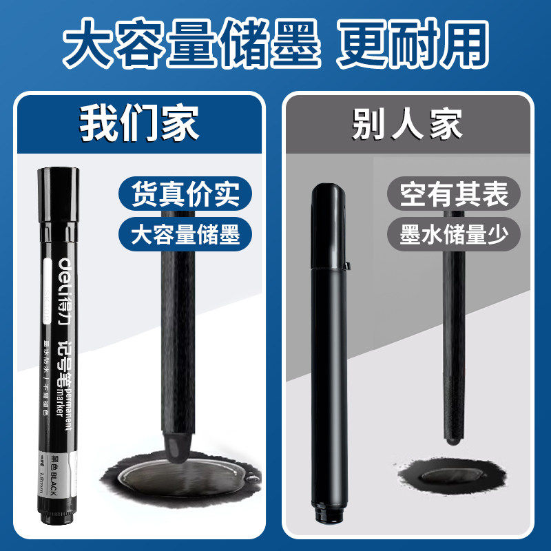 得力记号笔黑色防水不掉色油性大头笔粗头马克笔红蓝快递标记黑笔