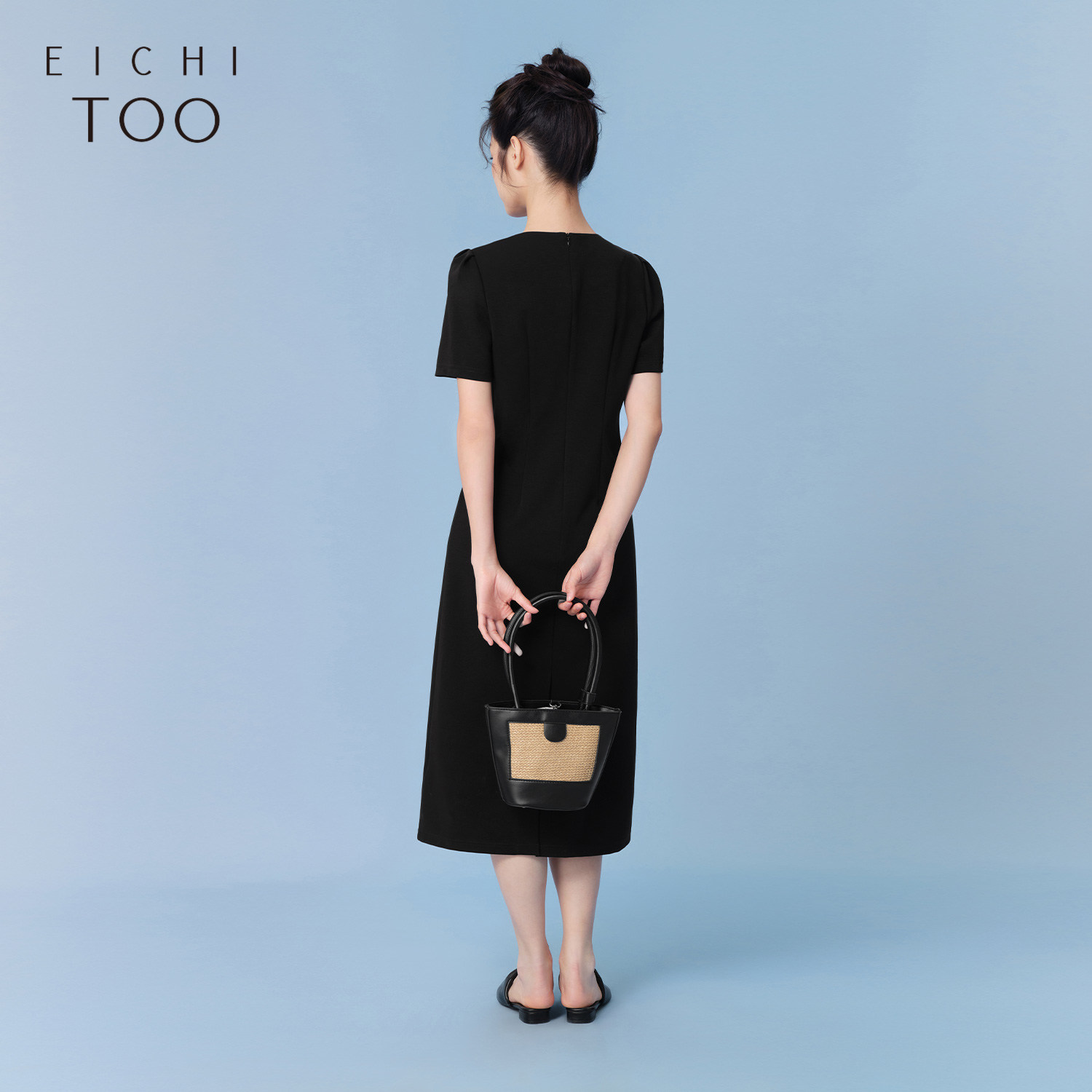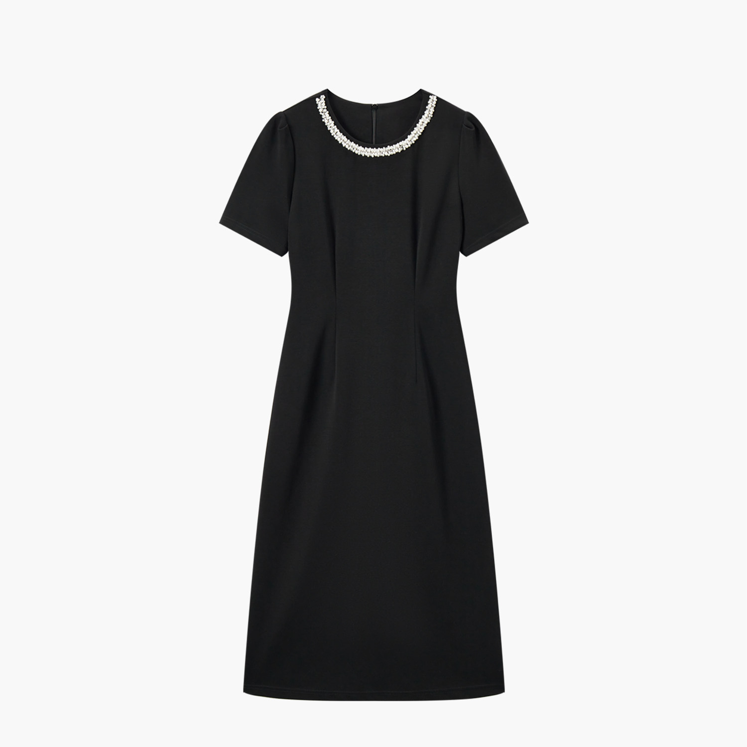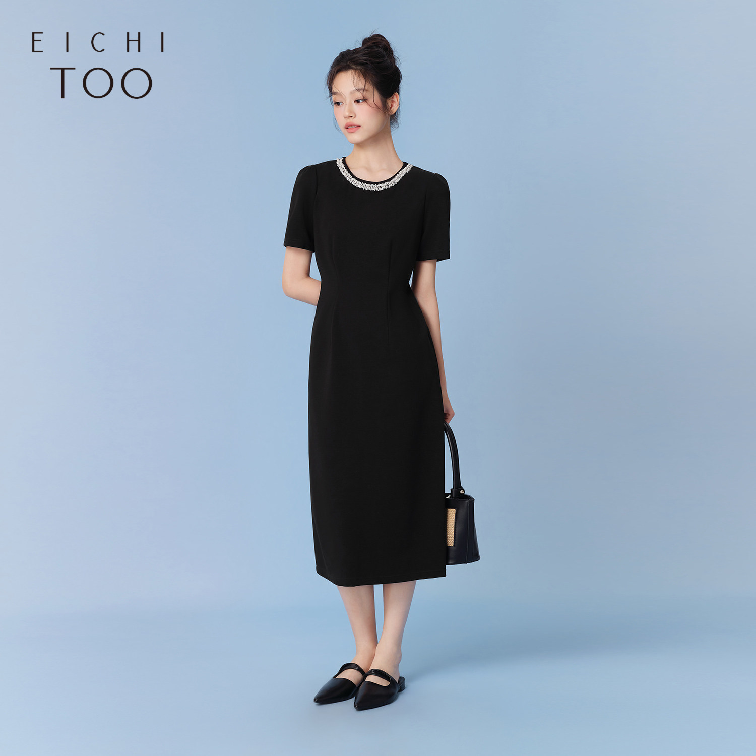 爱居兔夏季新款简约大气基础圆领小黑裙赫本风连衣裙