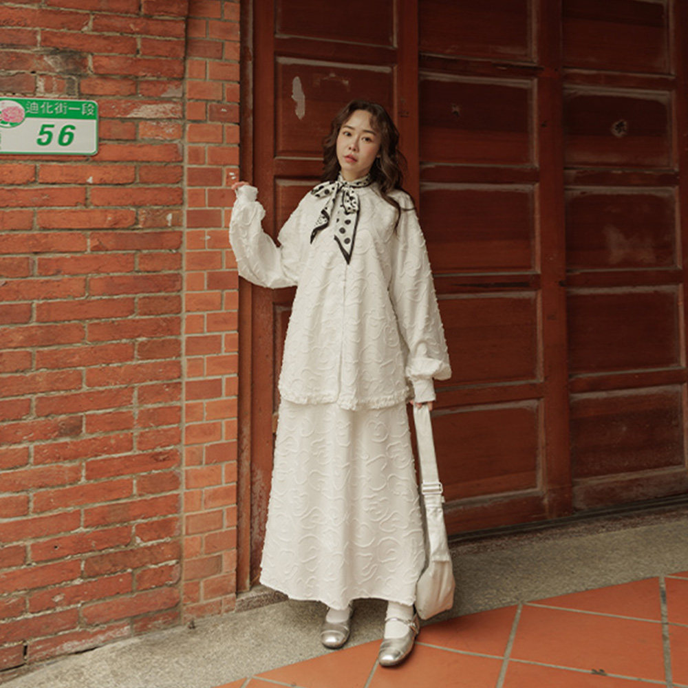 QUEENSHOP 2026春夏新品女装日系绒毛花朵缇花伞摆长裙03021661