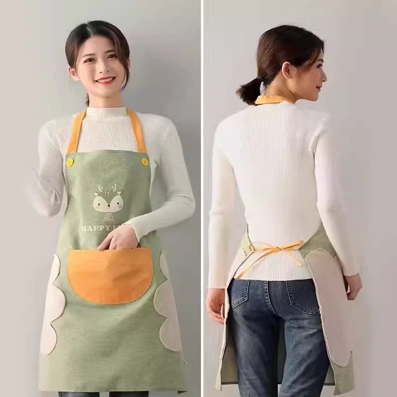 厨房小清新围裙ins风工作服可调节文艺家用防脏定制logo棉麻围腰