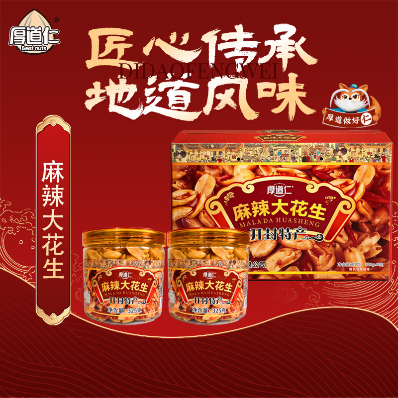 厚道仁麻辣花生新鲜麻辣油炸花生米罐特产开封下酒菜零食礼盒批发