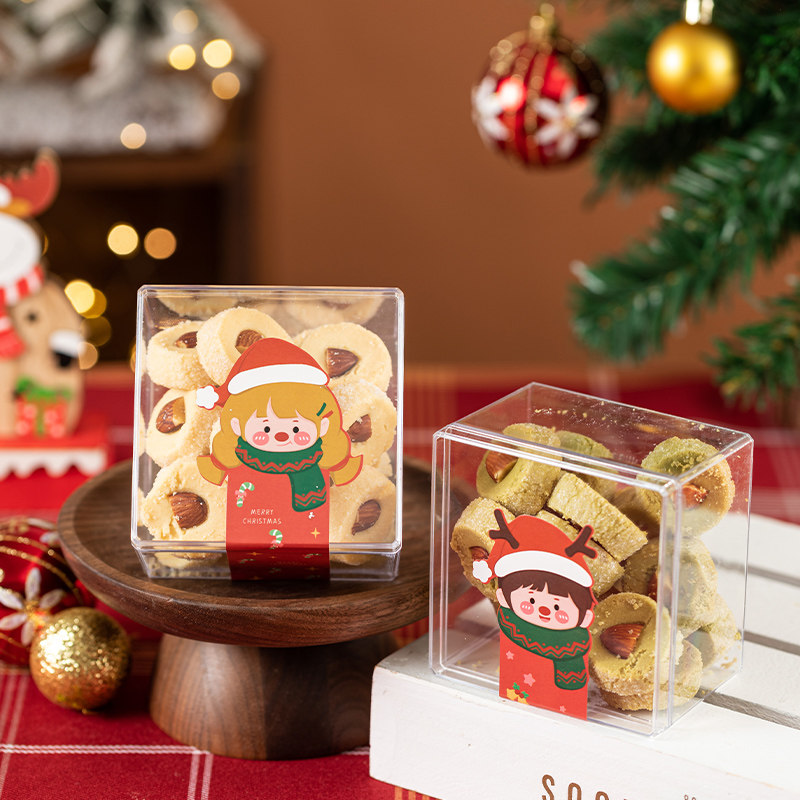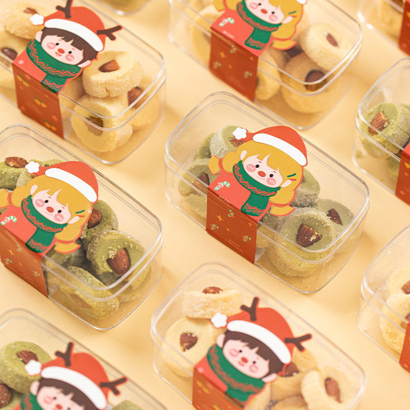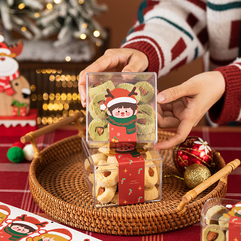 圣诞饼干包装盒贴纸蔓越莓饼干包装罐曲奇雪花酥奶枣透明塑料盒子