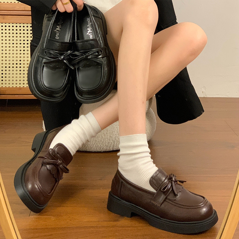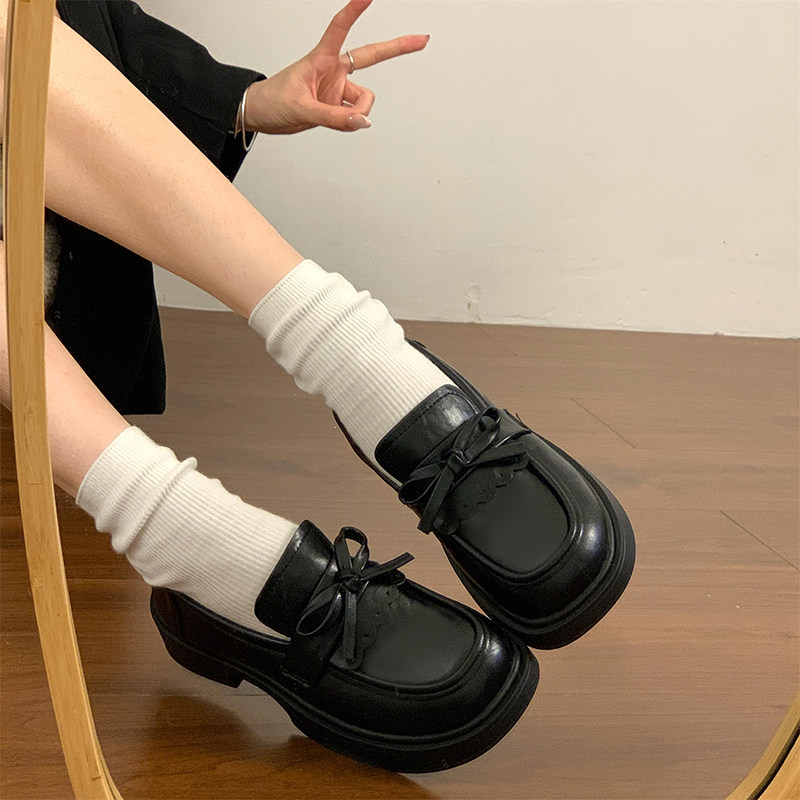 法式蝴蝶结厚底小皮鞋女2026年春夏季新款复古英伦风乐福鞋jk单鞋
