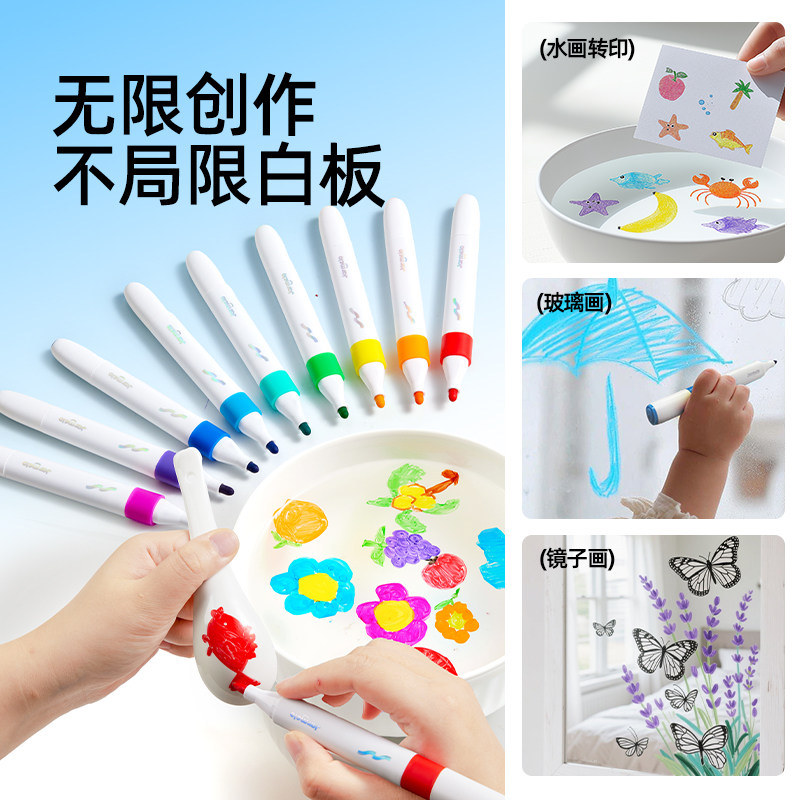 美乐童年儿童双头彩色白板笔漂浮笔可擦水性学生益智文具涂鸦笔